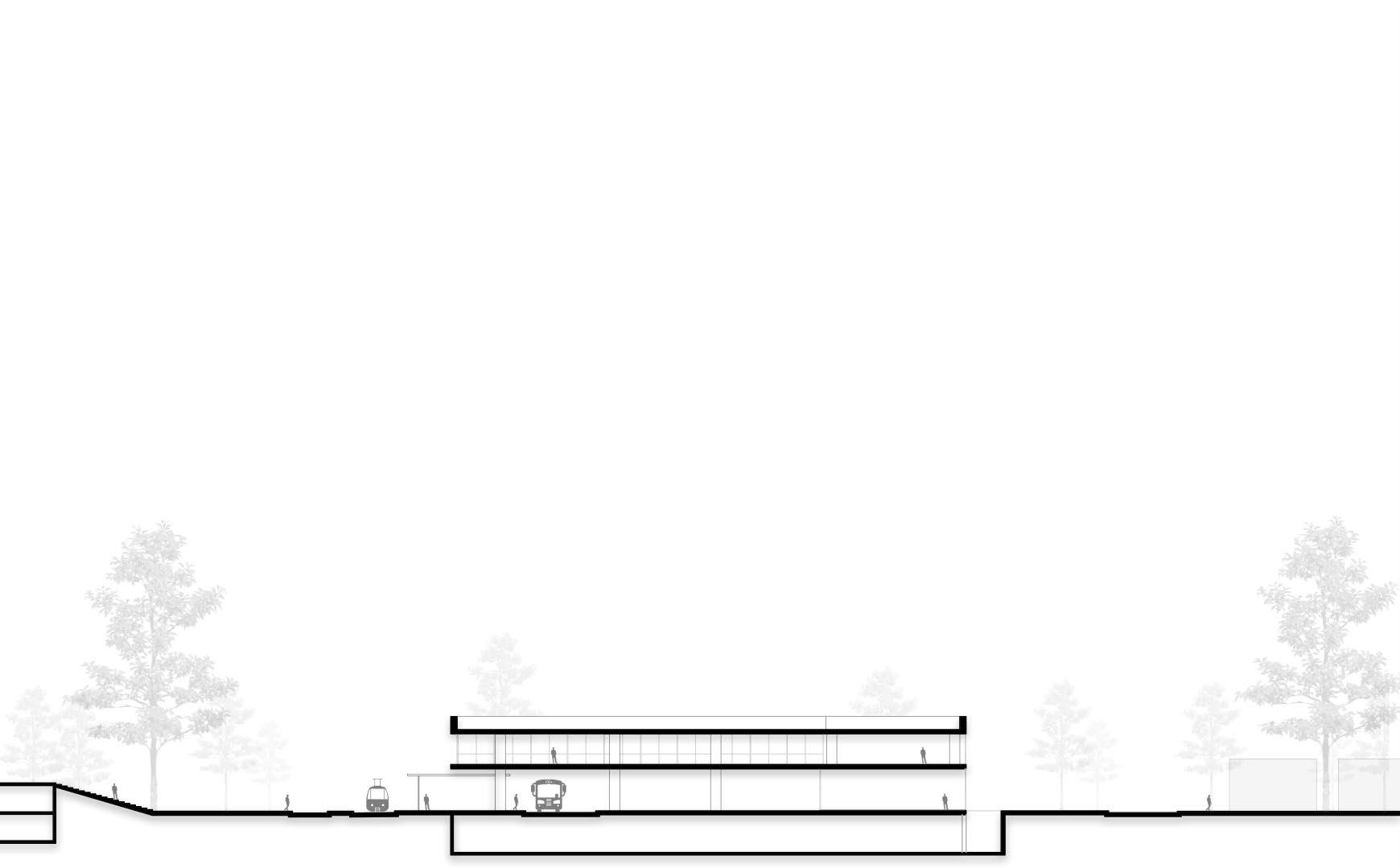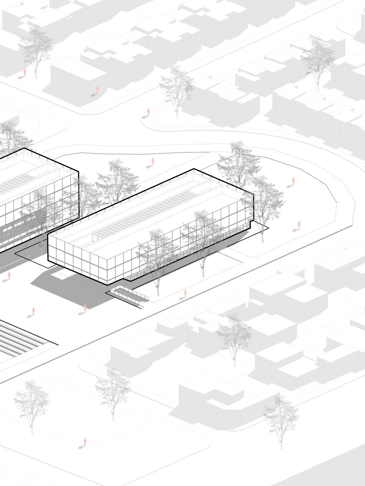 Above the park terrains, the civic center detaches from the ground level creating covered spaces that allow visual continuity, seeking to not interrupt the existing landscape and respecting this sector´s nature as well as the lamination within.