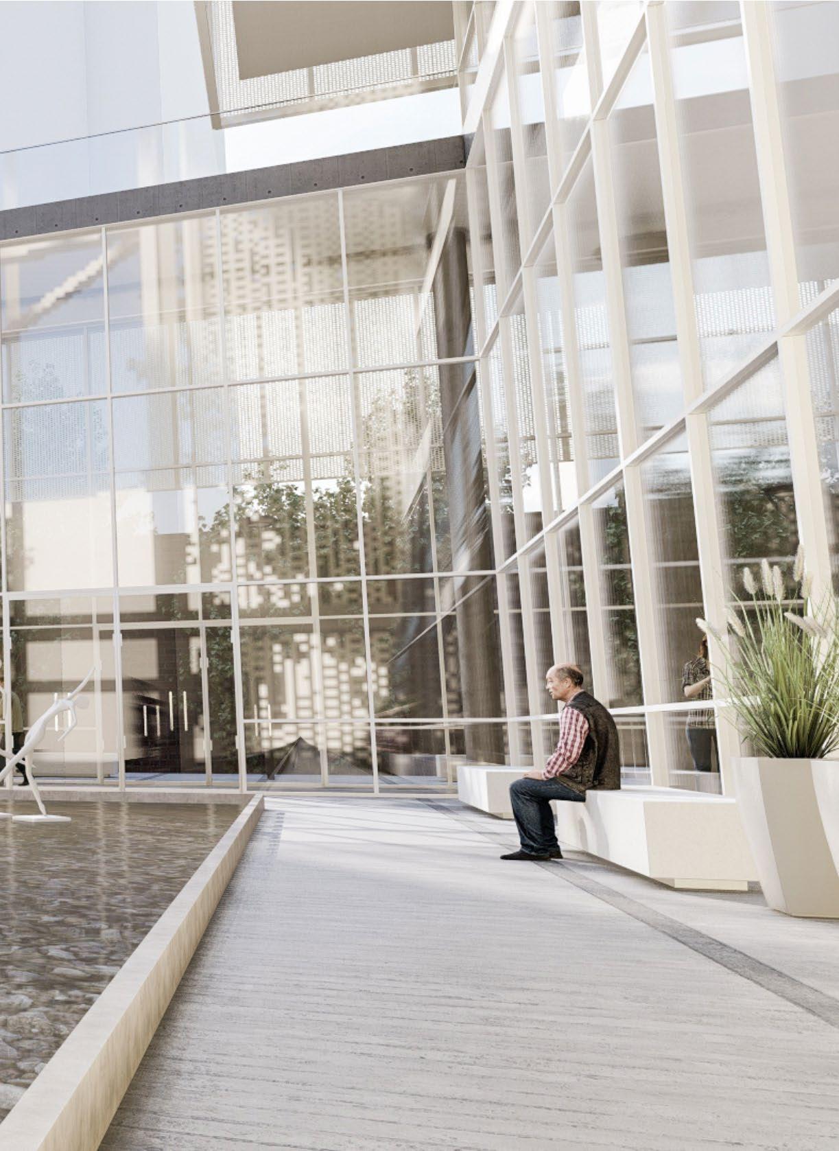 Se compone de dos barras rodeadas de verde que funcionan en conjunto: hacia el Sur, lo cívico y administrativo y hacia el Norte, lo cultural, en contacto con la tierra y el usuario.