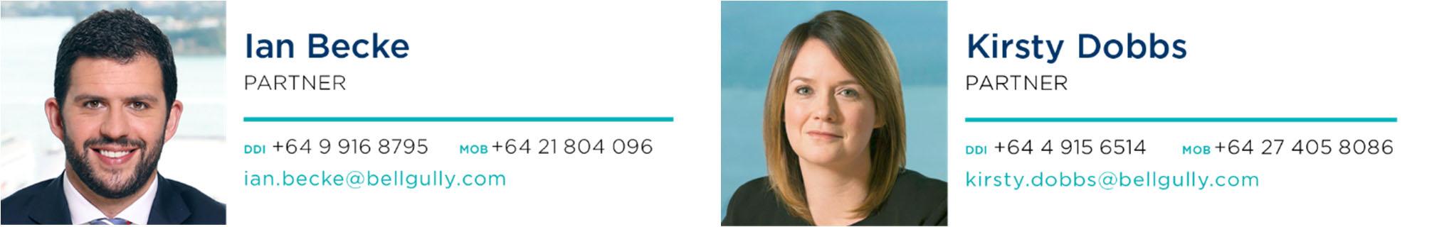 For further information on the topics discussed please get in touch with the contacts listed or your usual Bell Gully adviser. AUCKLAND