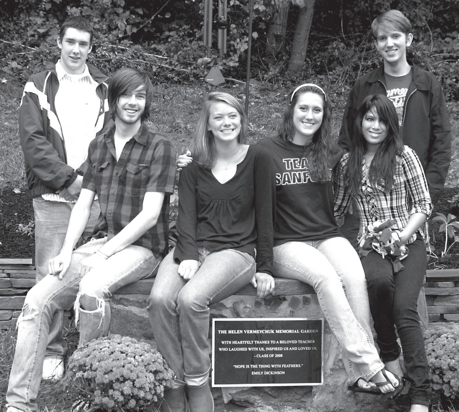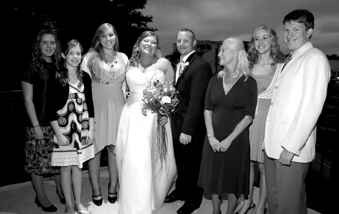 Debbie Crowell Deveney ’69 told us she was sorry to have missed Homecoming and Jackie’s celebration. Her daughter, Krista, was married that day inn Phoenixville, Pa. Sanford grad and cousin, Rev. Heather Shortlidge ’97, performed the ceremony. Shown below is a photo of Debbie’s mom, Gail Carson Crowell ’50, with all her grandchildren at the wedding Brianna Shumate, Allison, Emily and Melissa Crowell (daughters of Jeff Crowell ’74); Tyler Cressman, (son of Jackie Crowell Sham ’70); Nate Deveney (Debbie’s son),