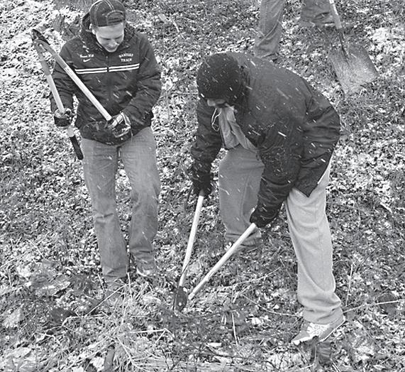 Upper School students Wil Anderson and Marcus Thompson helped to clean up the grounds of the Wilmington & Western Railroad.