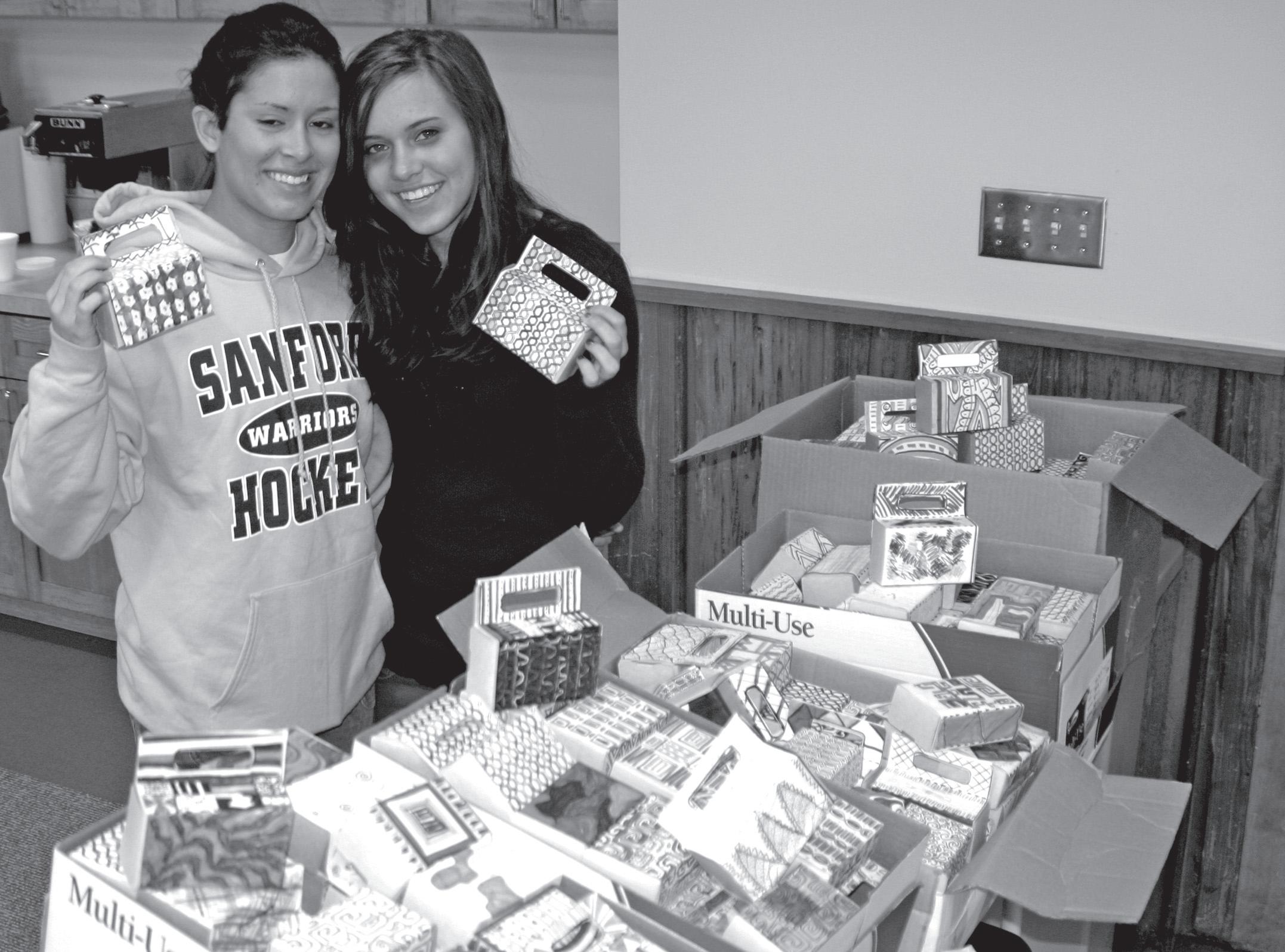 Juniors Lilla Alchon and Julianne Shenton supported last year’s Power Up Gambia effort. The students are seen here with decorated boxes that were used to collect money for Sulayman Junkung General Hospital.