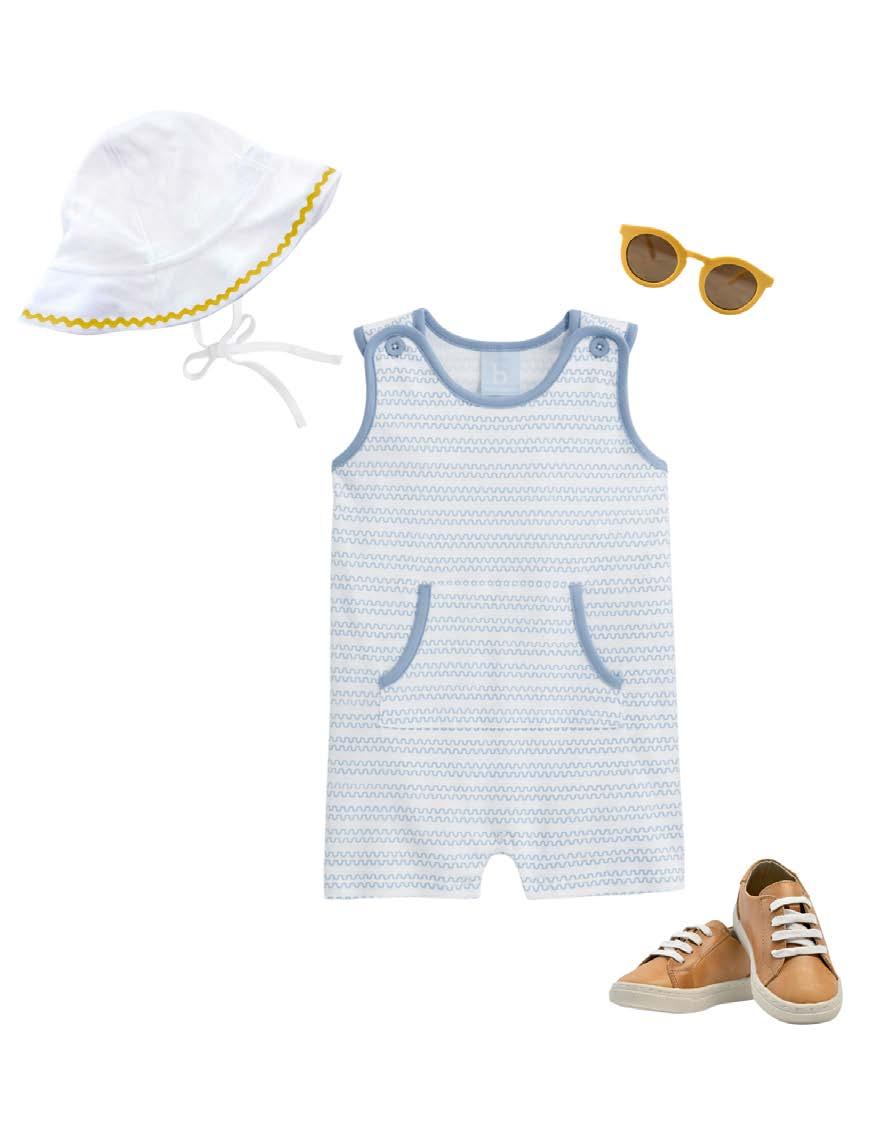 Calloway Sun Hat. White w/ Yellow. Sizes s (6-12m), m, (12-24m), l (2-4y). $32 | Printed Pima Jude Overall. Blue Ticking. Sizes 6m-3y. $42 | Sunglasses. Mustard. One size. $15 | Low Top Sneakers. Premium top-grain leather. Natural. Sizes 3-13. $64 limited availability. Mini Classic Tote. Navy. One size. $12 | Gold Accent Sunglasses. Red. One size. $15 | Pique Jersey Shortall. Moody Blue w/ Ivory. Sizes 6m-3y. $44 | Low Top Sneakers. Premium topgrain leather. Sage . Sizes 3-13. $64 limited availability.