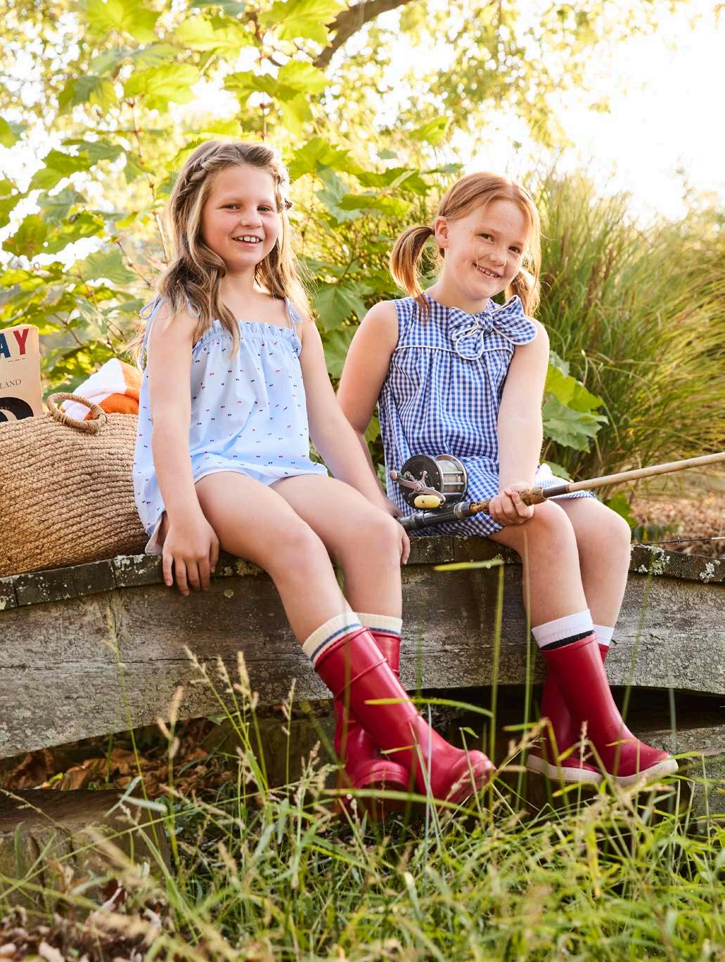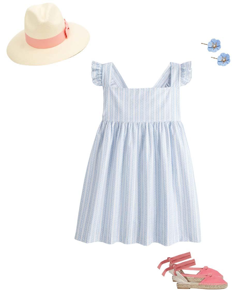 Kids Sun Hat. Blush. One size. $65 | Scalloped Shelby Dress. Seascape. Sizes 6-12y. $70 | Gold Accent Sunglasses. White. One size. $15 | Summer Sandal. Avarca Pomodoro Leather. Soft Nappa Leather. Sizes 9.5-13. $65/€65 minorquines.com