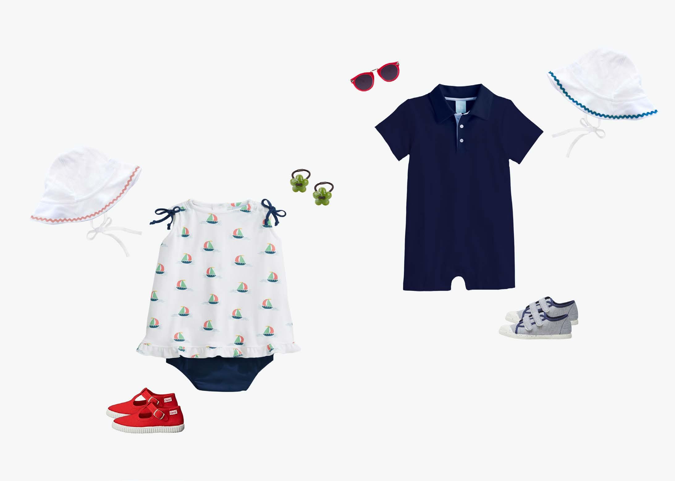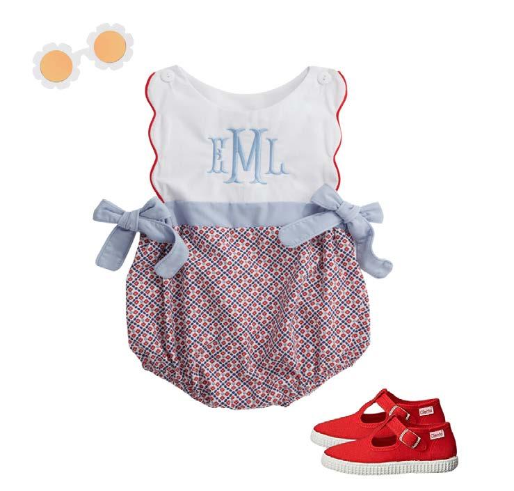 Calloway Sun Hat. White w/ Rose. Sizes s (612m), m, (12-24m), l (2-4y). $32 | Spring Flower Ponytail Hair Tie. Green. $1.70 | Pima Sally Swing Set. Coral Seas. Sizes 3m-3y. $56 | T-Bar Shoe. Red. Sizes 9-12. $38 Gold Accent Sunglasses. Red. One size. $15 | Pima Ryan Romper. Navy w/ Light Blue. Sizes 6m-3y. $44 | Calloway Sun Hat. White w/ Moody Blue. Sizes s (6-12m), m, (12-24m), l (2-4y). $32 | Double Hook & Loop Sneaker. Navy w/ White Stripe. Sizes 7.5-2.5. $52 Printed Finn Pima Romper. Coral Seas. Sizes 6-24m. $48 shop these looks on our website bellabliss.com