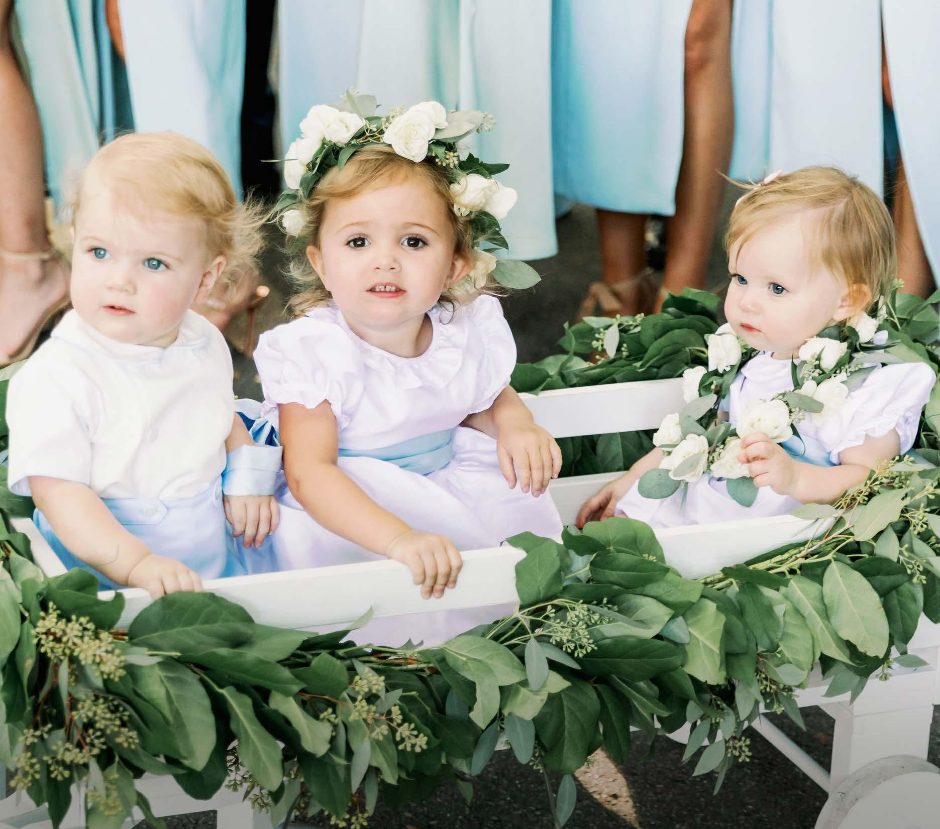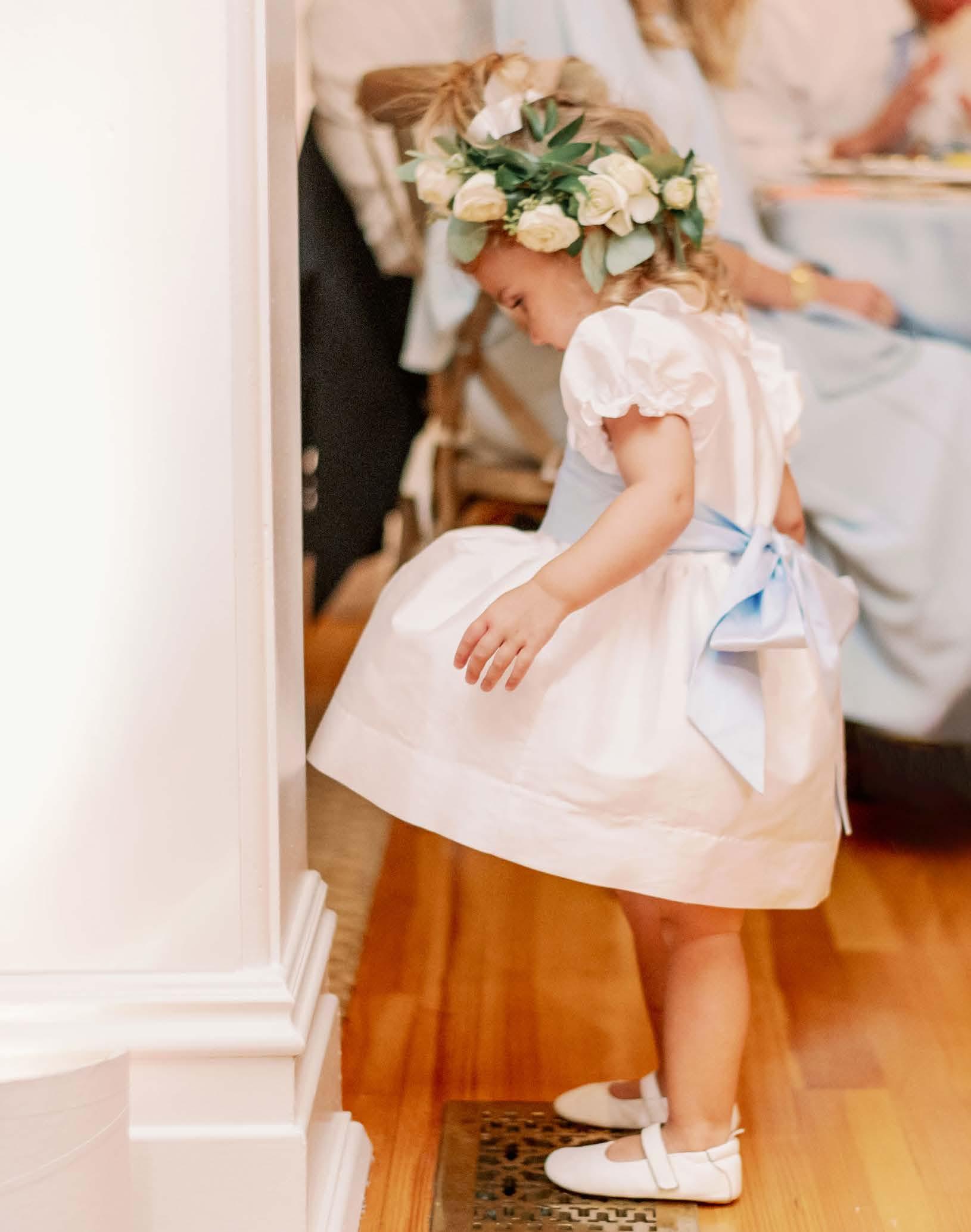 Scalloped Shelby Bubble. Blue Dot. Sizes 3-24m. $52 | Daisy Straw Bag. Natural. One size. $45 | Selina Scalloped Mary Jane. Dusty Blue. Sizes 7–13. $56