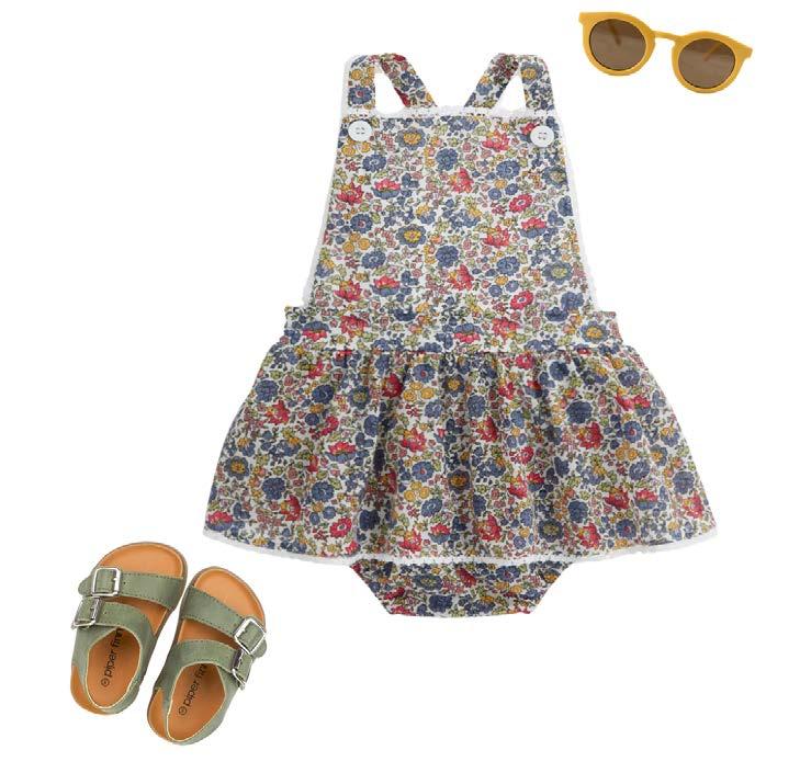 Sunglasses. Mustard. One size. $15 | Beezie Bubble. Meadow Floral. Sizes 2-12y. $68 | Buckle Sandal. Sage. Sizes 4-2. $59 limited availability