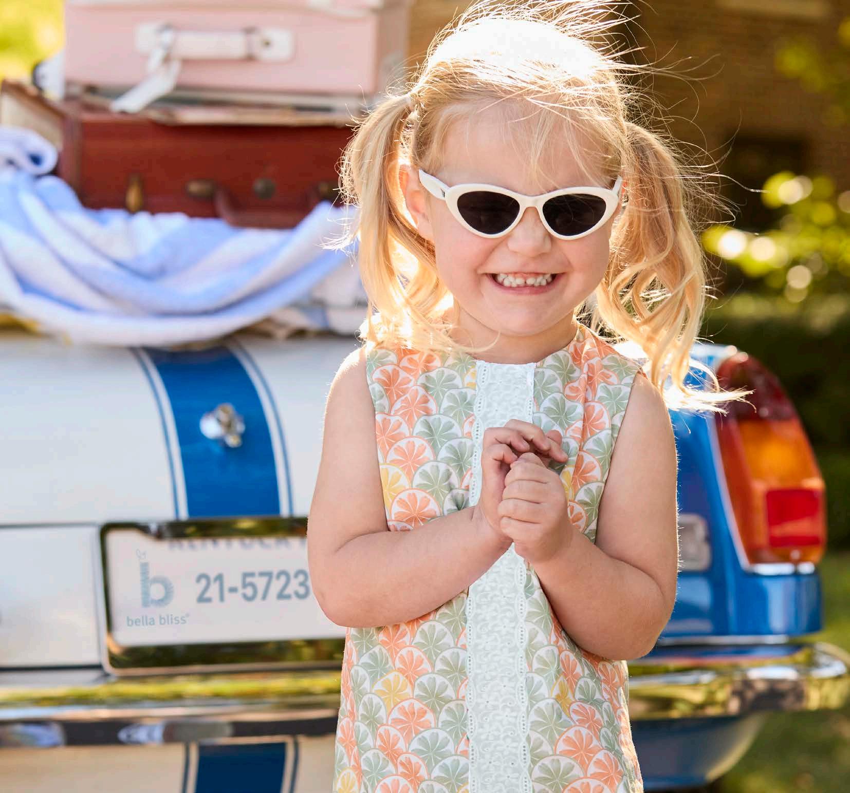 Babiators Euro Round Sunglasses. Peachy Keen. Sizes 0-2y, 3-5y and 6y+. $26 | Printed Newport Bathing Suit. Summer Squeeze. Sizes 4-14y. $72 | Babiators Daisy Sunglasses. White. Sizes 0-2y, 3-5y and 6y+. $36 | Marilyn Smocked Two Piece Bathing Suit. Seascape. Sizes 4-12y. $76
