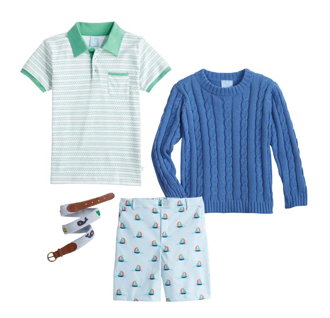 comfort tennis-to-terrace Printed Pima Ward Polo. Green Ticking. Sizes 2-14y. $52 | Cableknit Pullover. Royal. Sizes 4-12y. $70 | Crochet Belt™. Whales. Sizes s, m, l, xl. $52 | Printed Performance Dress Short. Coral Seas. Sizes 6-14y. $76 Pique Ward Polo. Ivory w/ Moody Blue. Sizes 2-14y. $48 | Sebastian Sunglasses. Green. One size. $39.99 | Pique Half Zip With Pocket. Ivory w/ Moody Blue. Sizes 2-14y. $66 | Pique Nash Short. Iory w/ Moody Blue. Sizes 2-8y. $38 | Low Top Sneakers. Premium top-grain leather. Sage. Sizes 3-13. $64 limited availability.