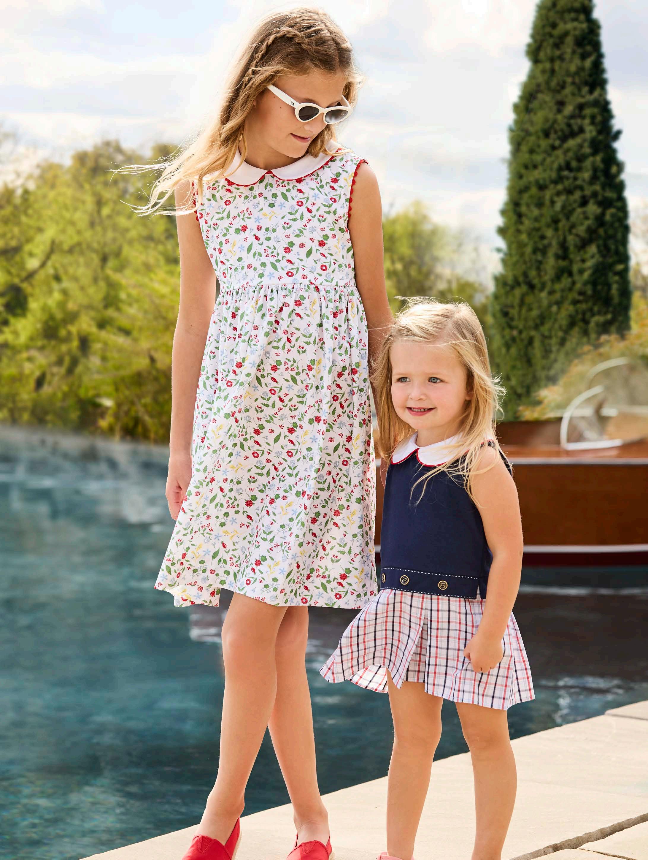 Ruffle Sleeve Suzette Dress. Bayview Check. Sizes 4-14y. $74 | Embroidered Regina Dress. Blue Ticking w/ Grapes. Sizes 2-6y. $72 | Peter Pan Sundress. Bayview Floral. Sizes 12m-6y. $72