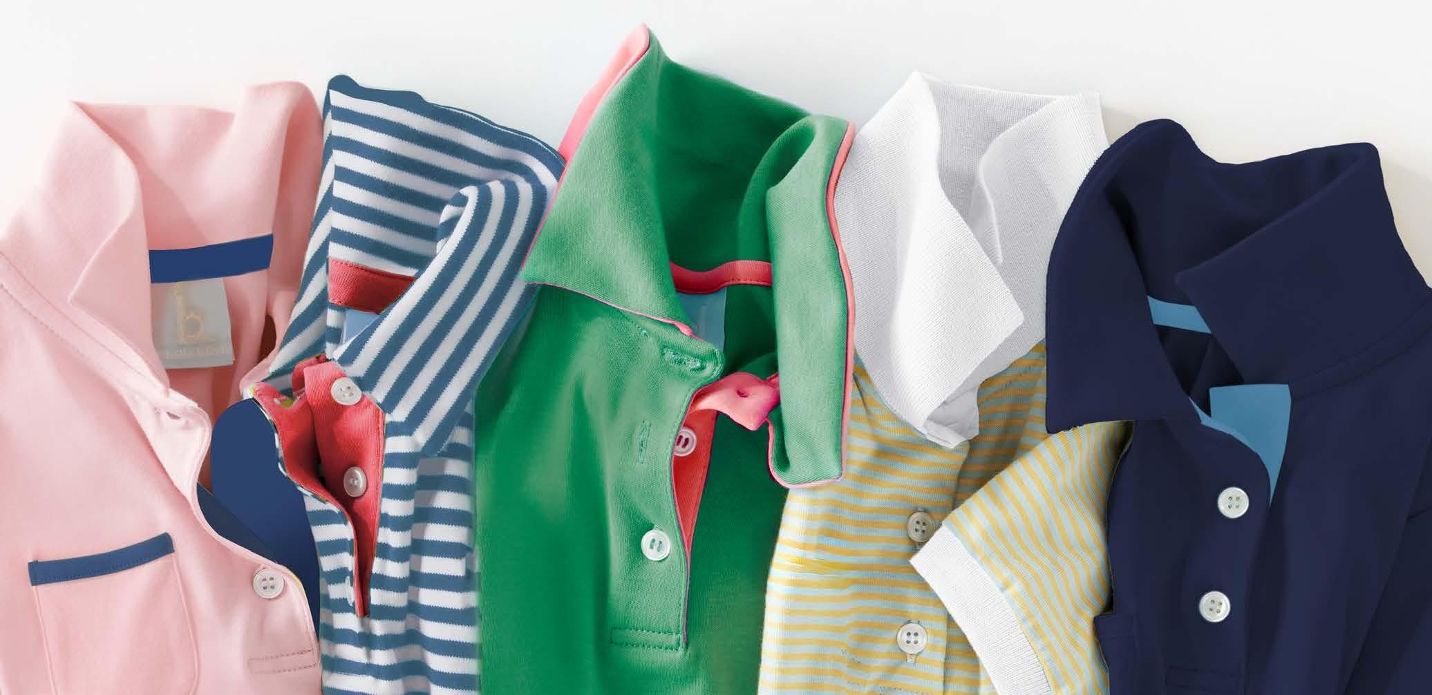 Pima Ward Polo. Pink w/ Blue Silver. Sizes 2-14y. $48 | Striped Contrast Trim Pima Polo. Royal/White Stripe w/ Coral. Sizes 12m-14y. $48 | Pima Ward Polo. Green w/ Coral. Sizes 2-14y. $48 | Reed Jersey Polo. Blue/Yellow Thin Stripe. Sizes 2-14y. $44 | Contrast Trim Pima Polo. Navy w/ Light Blue. Sizes 2-14y. $46