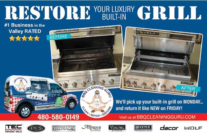 April 2024 | WelcomeHomeAZ.net 11 WE DO IT ALL! Meet With Our Professional Design Team • Artifical Turf & Putting Greens • Artificial Turf Care • Custom Grills & Fire Pits • Pergolas • Paver Patios & Driveways • Outdoor Lighting Systems • Water Features • Retaining Walls & Free Standing Walls • Drought Tolerant Landscapes • 3D Landscape Designs Available OUR WHOLESALE PRICE IS DIRECT TO THE PUBLIC BEFORE AFTER Mention this ad. Restrictions may apply, call for details. Cannot be combined with other offers. Expires 5/15/24. 10% OFF YOUR TURF PROJECT + FREE DESIGN FINANCING AVAILABLE ROC#345916 & #323643 CALL TODAY FOR A FREE CONSULTATION AND ESTIMATE 602-457-2115 • TURFMONSTERSAZ.COM VISIT OUR SHOWROOM • 21602 N 2ND AVE, SUITE 6 • PHOENIX, AZ 85027