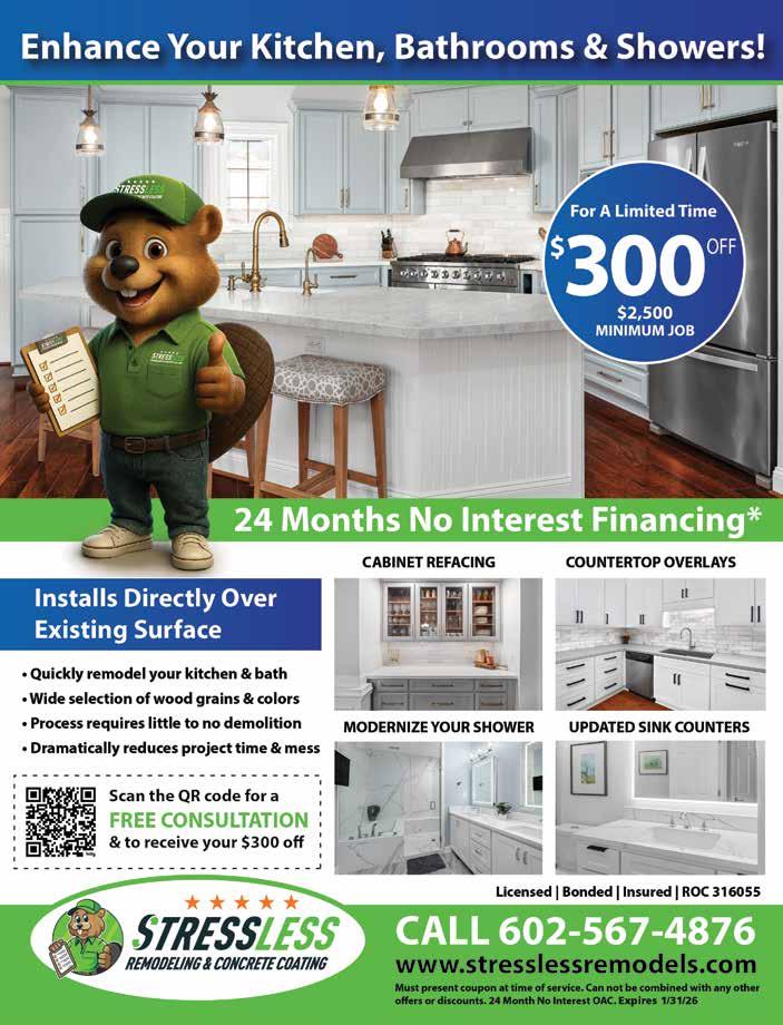 provider of customized storage and cabinet solutions for walk-in and reachin closets, garages, laundry rooms, home offices, and kitchen pantries. Locally family-owned and operated, they service the greater Phoenix area. It's their mission to provide customers with the best service and experience possible. See their ad on pages 12 & 13 for more details.
