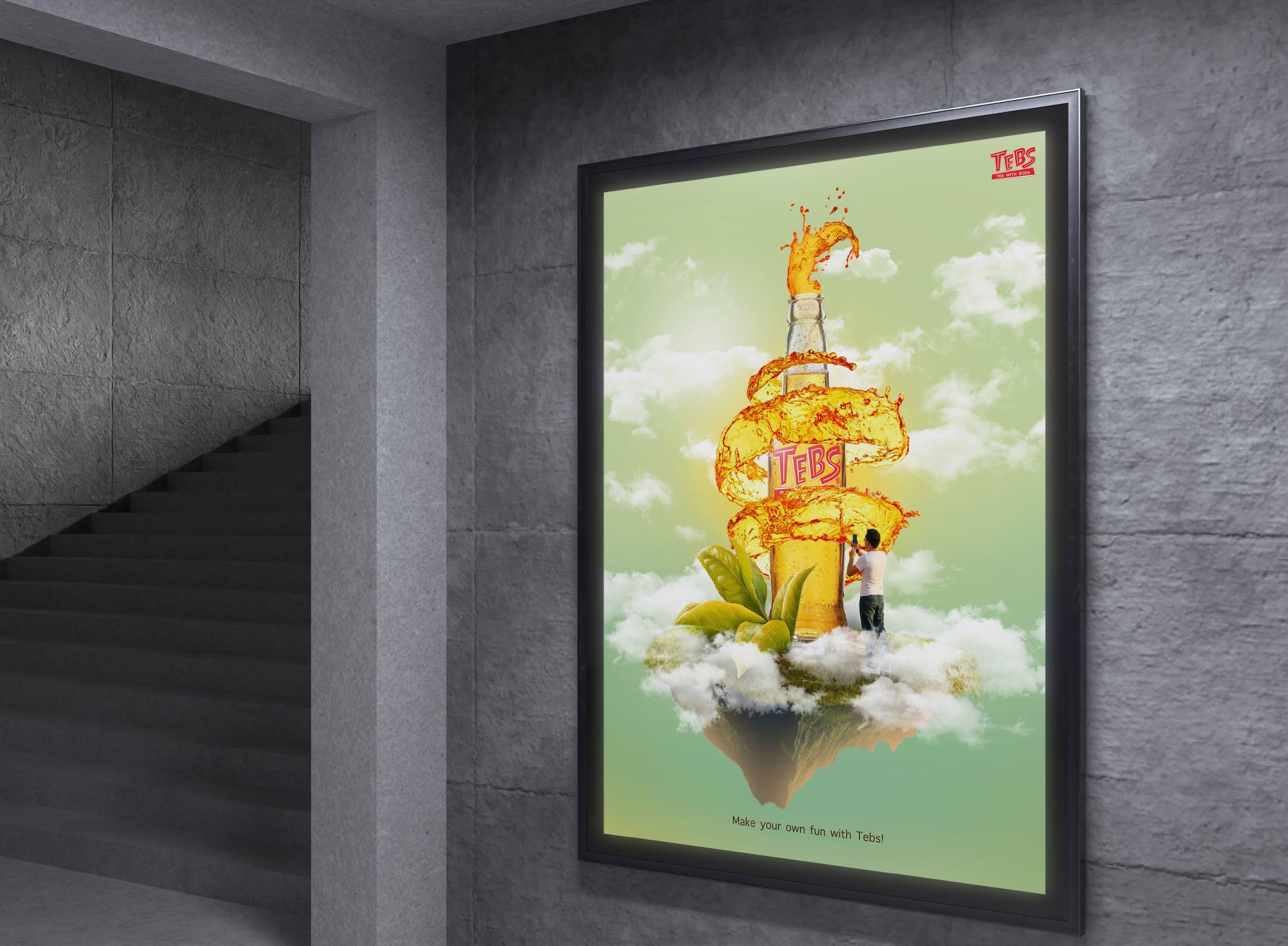The campaign was designed for the Tebs, a company that sells tea with shocking soda. The project's goal is to build brand awareness and brand value to develop a promotional campaign; Tebs has brand value as a tea drink with soda. The visuals express the mood, imagination, and enjoyment created when consuming Tebs.