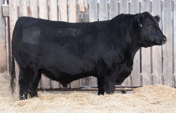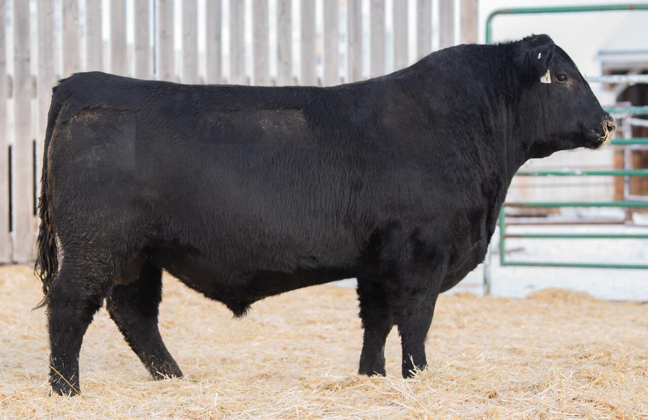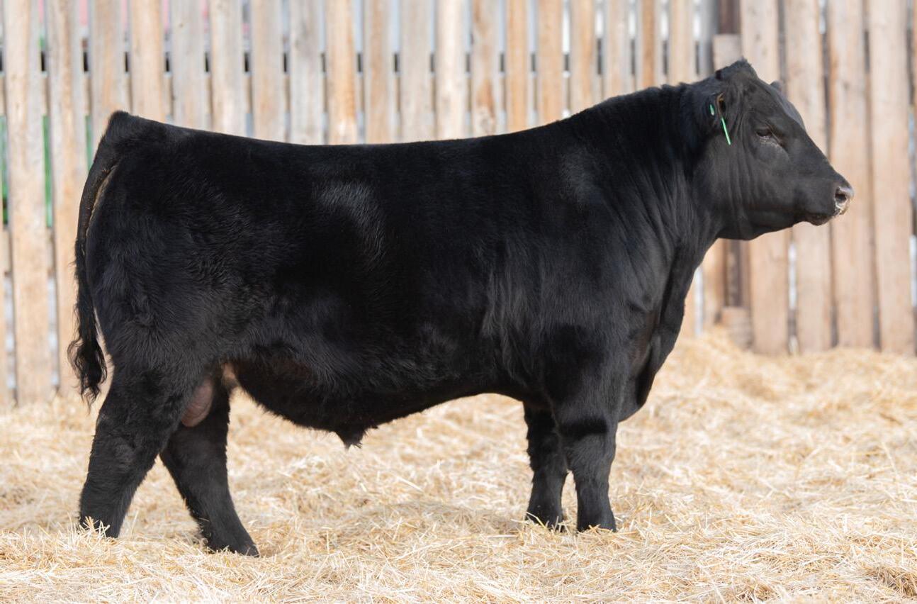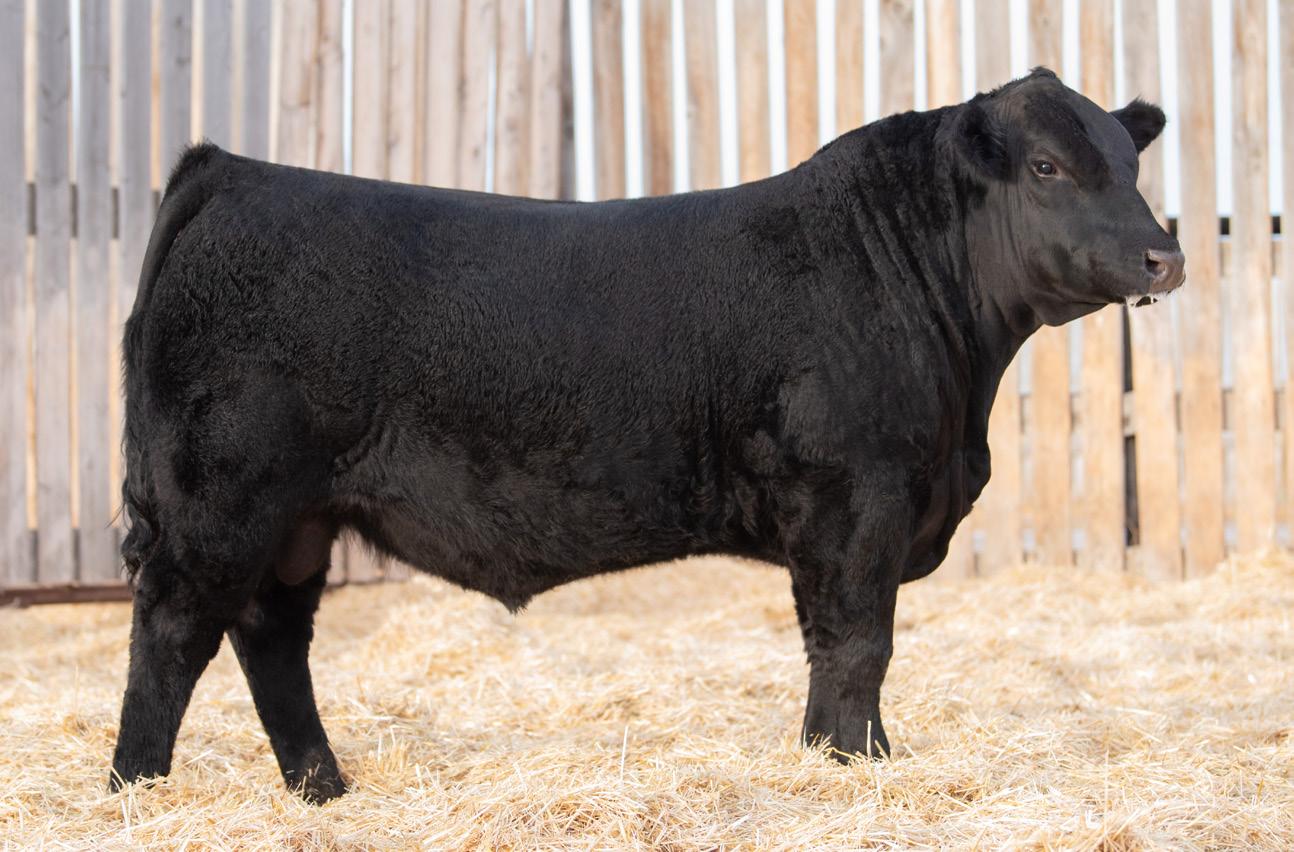 The 2023 Farmfair International Grand Champion Bull. Calves are uniform in design, consistent moderate birth weights while adding muscle and depth. Co-owned with Miller Wilson Angus