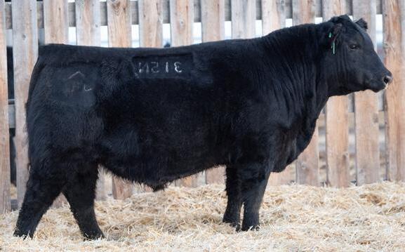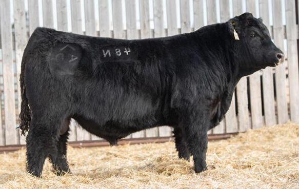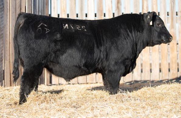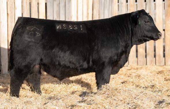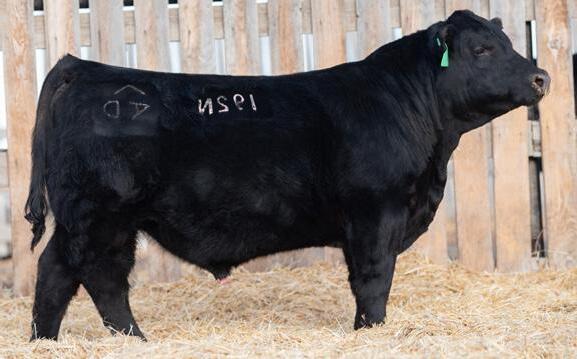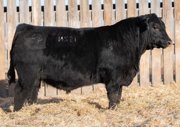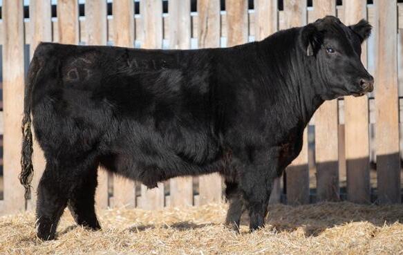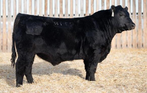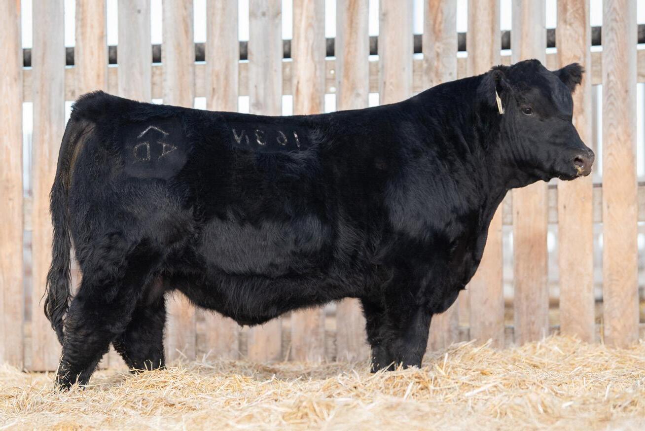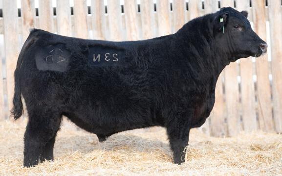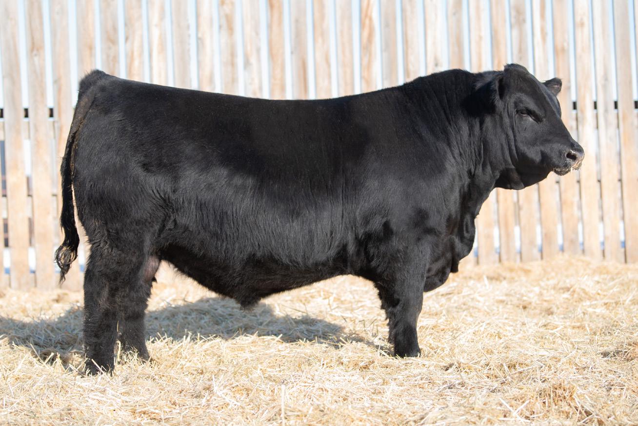 The 2023 Farmfair International Grand Champion Bull. Calves are uniform in design, consistent moderate birth weights while adding muscle and depth. Co-owned with Miller Wilson Angus
