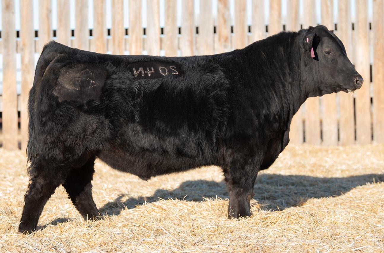 Our second Hill Valley Reckoning son from Young Dale Angus. Kruller is a complete made, balanced bull standing on a strong foot. Extremely docile, backed by Young Dale Donna 174B, a top cow from the YDF program. This bull is breeding really well and was used heavily this past breeding season.