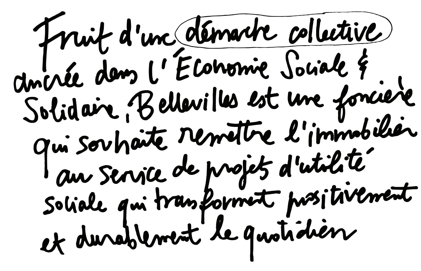 Par cette voix, nous voulions vous partager nos réussites, nos échecs, et nos questionnements. Plus largement, en première approche, il nous tenait à cœur de pouvoir inscrire Bellevilles dans un héritage, dans son écosystème bouillonnant et en relation avec nos parties prenantes et bénéficiaires. Nous espérons que ce document pourra faire office de base de discussion et d’échange, susciter le débat sur un métier et une vision du monde.