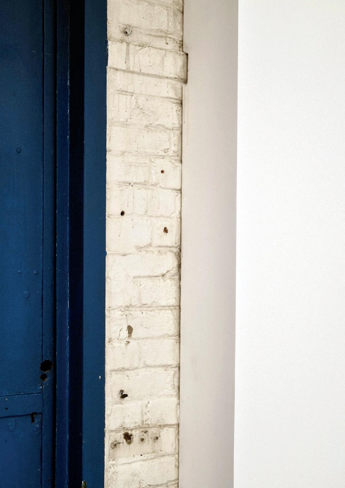La démarche architecturale repose sur un principe fondamental de légèreté d'intervention, au profit d'une approche chirurgicale ciblée. "Il fallait soigner les pathologies par des actions légères," précise Mathieu Lamour, architecte de Bellastock. Cette philosophie a conduit à des interventions minimales mais stratégiques : un curage limité à l'essentiel, le remplacement sélectif des joints et visseries défectueux en toiture, la rénovation ciblée des espaces de bureaux, la réparation ponctuelle des murs fissurés, tout en préservant méticuleusement l'enveloppe générale des halles. La façade donnant sur le quai du Saule Fleuri, ayant fait l'objet d'une attention particulière, devient un symbole visible depuis l'espace public, suivant cette même logique de légèreté. Le ravalement prévu initialement au projet, a permis de révéler une structure métallique existante sous enduit. Cette trame structurelle a ainsi été remise en lumière dans la rénovation de la façade et réaffirmée par la teinte de bleu existant des éléments de serrureries et de menuiseries extérieures d’origine. La grande porte sectionnelle quant à elle, a été conservées bien que temporellement condamnée par la mise en place d’un mur à ossature bois isolant thermiquement l’intérieur du bâtiment. Jugée non indispensable au programme et à l’usage du projet, sa préservation permettra toutefois de retrouver son usage initial si besoin. Cette stratégie de "mise en attente" de certains éléments illustre parfaitement la vision réversible et évolutive qui anime l'ensemble du projet.