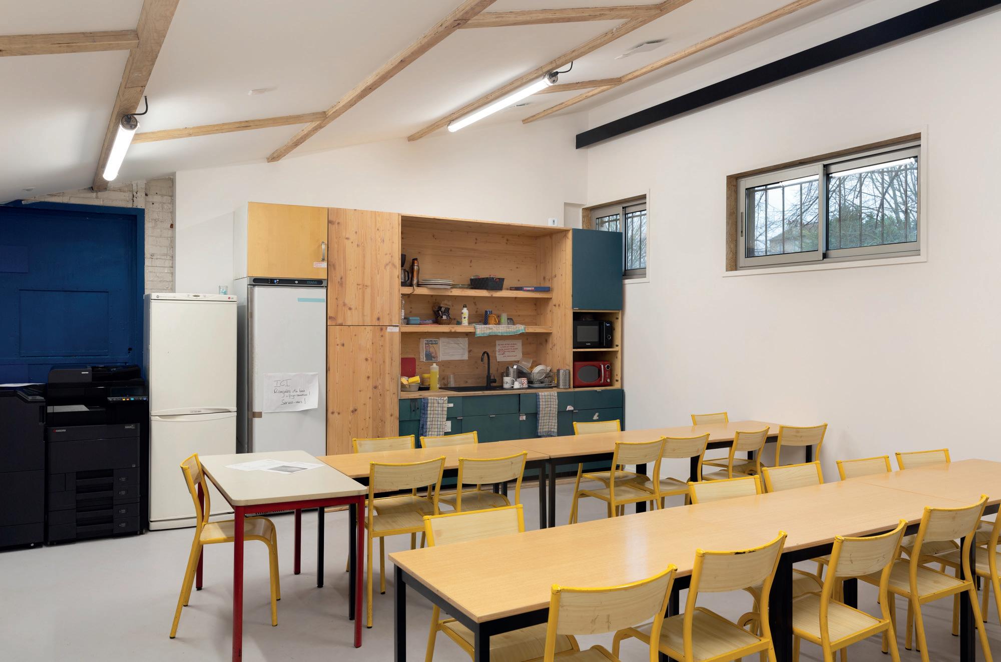 La singularité du projet réside dans la place centrale accordée aux entreprises dans le processus de conception. Les sociétés "Carré BTP / Agencement" et "Depuis 1920" ont été intégrées bien en amont du démarrage des travaux, non comme simples exécutantes mais comme véritables partenaires créatifs. "Le projet a été complètement retravaillé entre l'APD et le Pro," précise l'architecte, "pour réadapter en fonction de la ressource et des capacités de l'entreprise."Cette démarche collaborative a conduit à l'émergence de solutions inédites, issues d'un dialogue fertile entre les contraintes identifiées par les architectes et les savoir-faire spécifiques des entreprises. Elle réinstaure le chantier comme lieu de pensée architecturale, où les décisions conceptuelles ne sont pas figées dans les plans mais peuvent évoluer en fonction des réalités matérielles, techniques et humaines rencontrées. Le chantier est ainsi devenu un véritable laboratoire d'expérimentation, où les ajustements constants et le dialogue permanent ont permis de répondre avec agilité aux imprévus inhérents à toute opération de réhabilitation. "Pendant le chantier, on a fait quasiment autant de chantier que de continuité d'études," note l'architecte, "j'ai continué à produire des détails, j'ai continué à produire des adaptations de plans, on a changé pas mal de choses en cours de chantier."