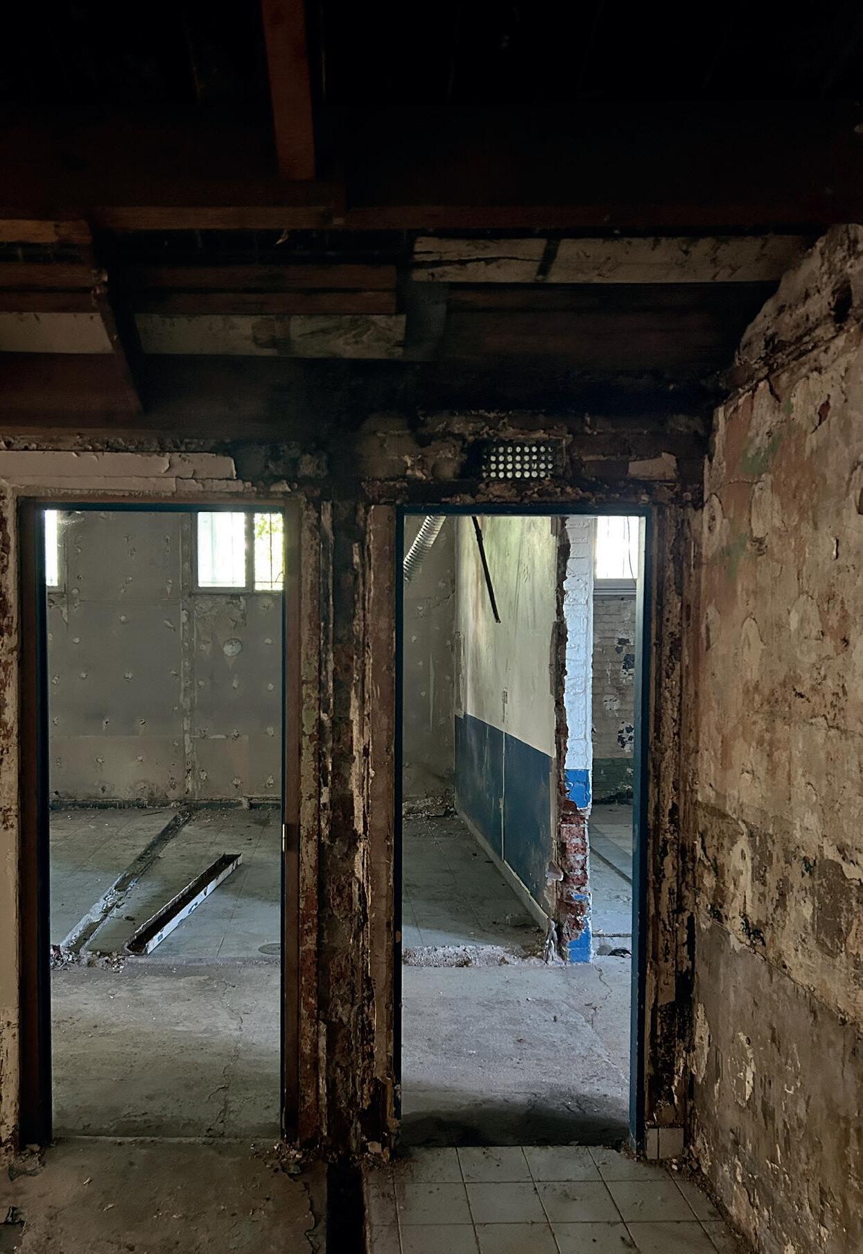 La rue intérieure, véritable colonne vertébrale du projet, traverse le bâtiment de part en part, reliant l'accès depuis le quai à la cour arrière. Cet espace de circulation, traité au sol par un platelage en bois de réemploi, acquiert une dimension qui dépasse sa simple fonction distributive. "C'est cette impression de dedans-dehors qui est très spéciale," note l'architecte, "tu entres dans le bâtiment et tu es encore dehors." Cette ambiguïté spatiale crée un espace intermédiaire précieux, ni tout à fait intérieur, ni complètement extérieur.