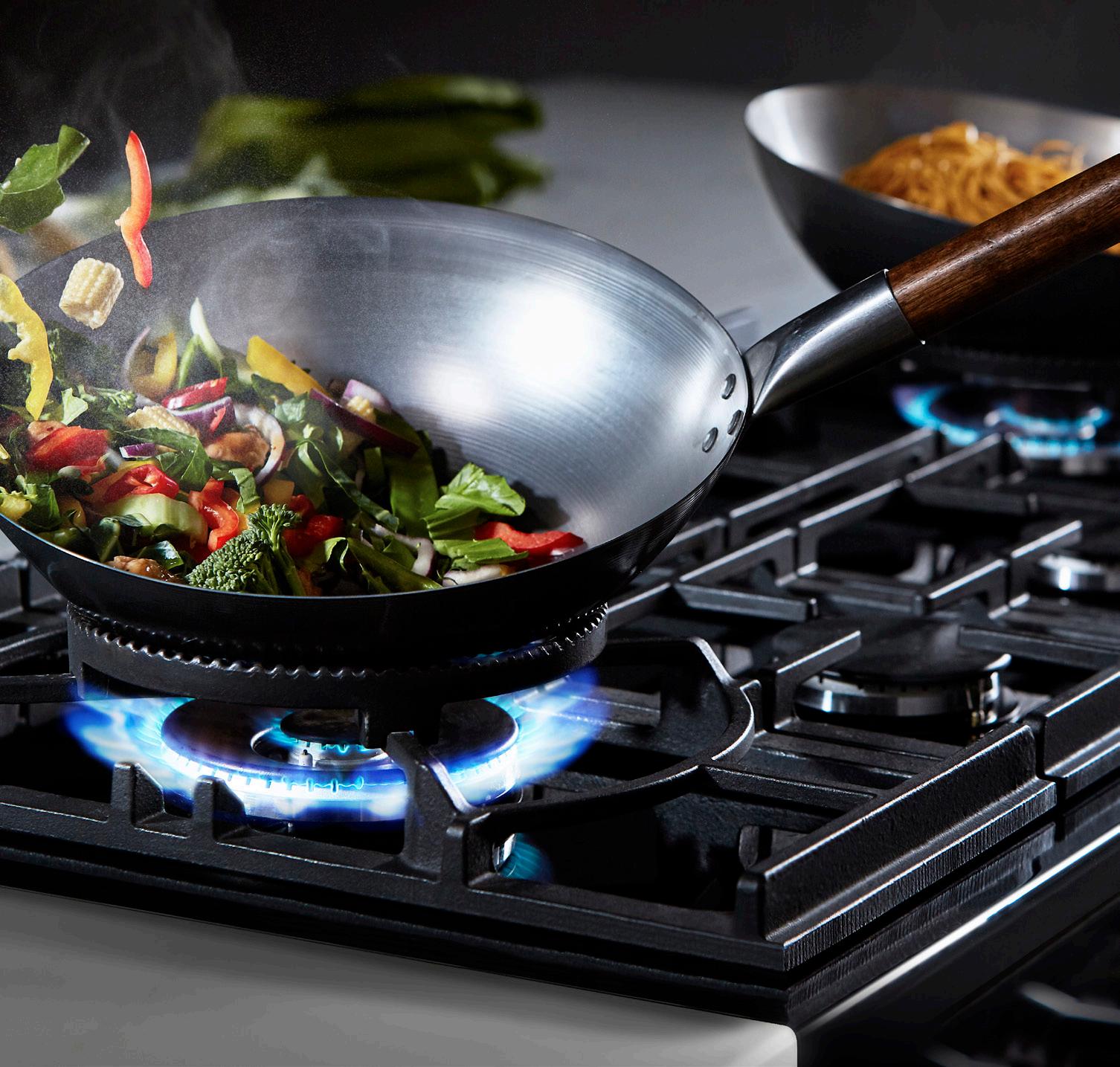 Provides even heat over a large area, it’s not only ideal for wok cooking but for high speed cooking with any large pan.