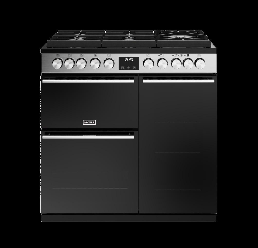 900mm Sterling Deluxe dual fuel range cooker with 5kW PowerWok™ burner.
