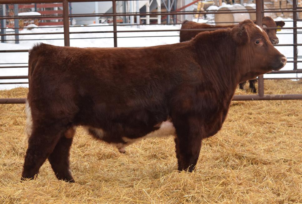 STUD!!! Dominant Type, Function and Growth. Here is a Zirconium son that has been turning heads since he was born. So much rib shape, top and quarter in this guy. Produced by an ideal-uddered Martin dam. He was a popular choice by the most astute cattlemen who saw him this fall at Farmfair and CWA.
