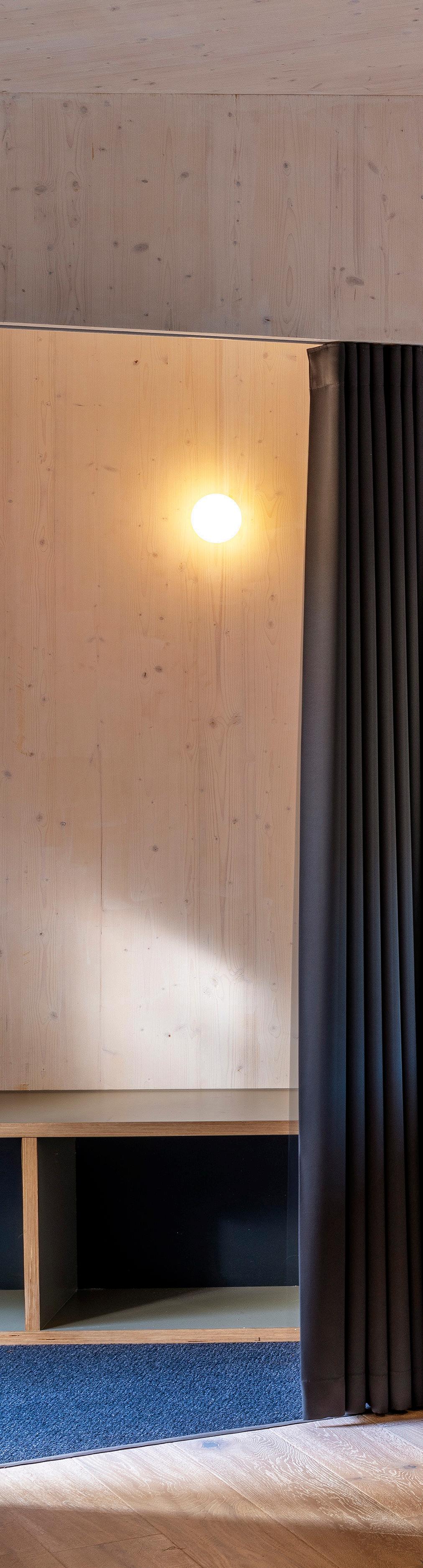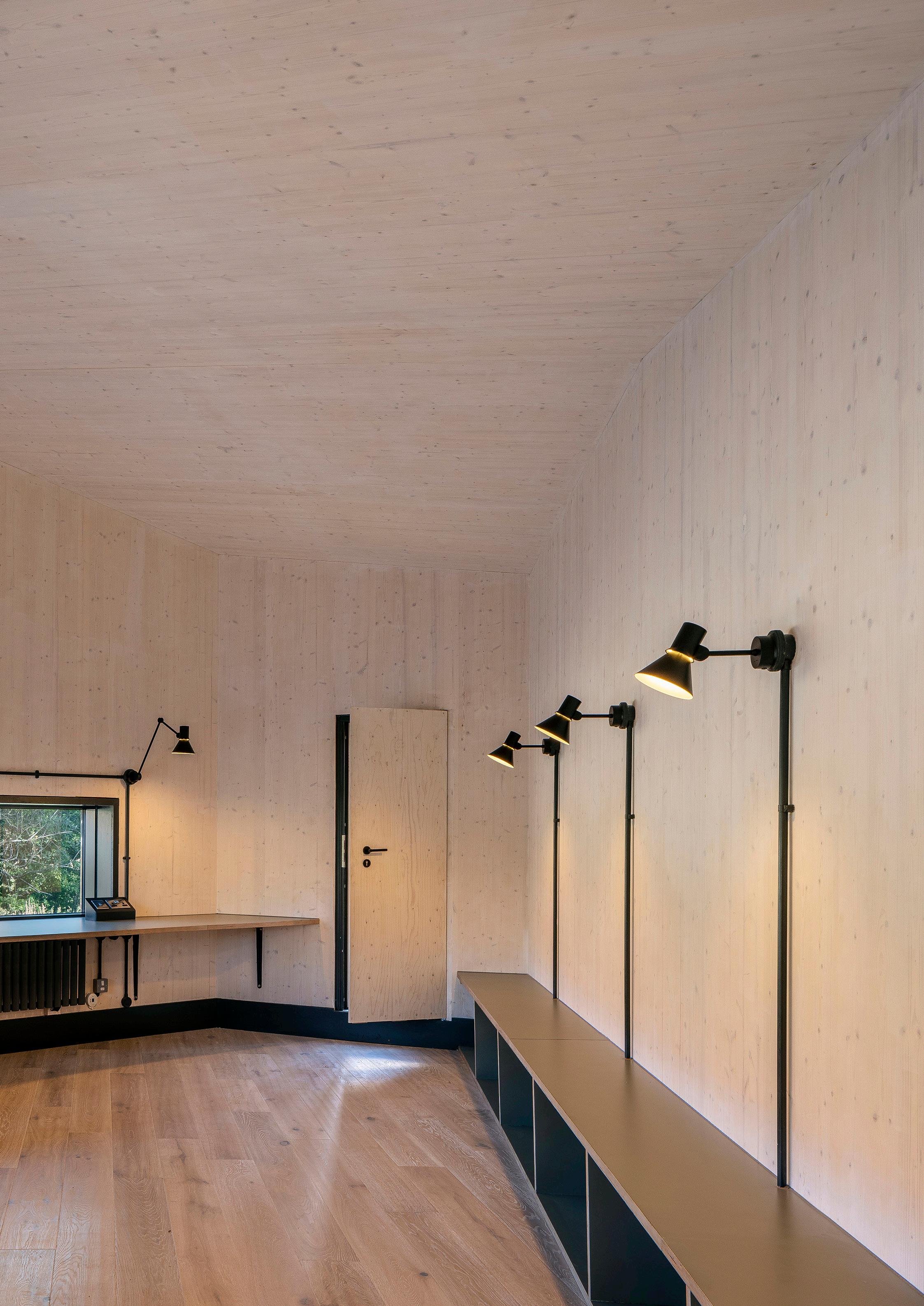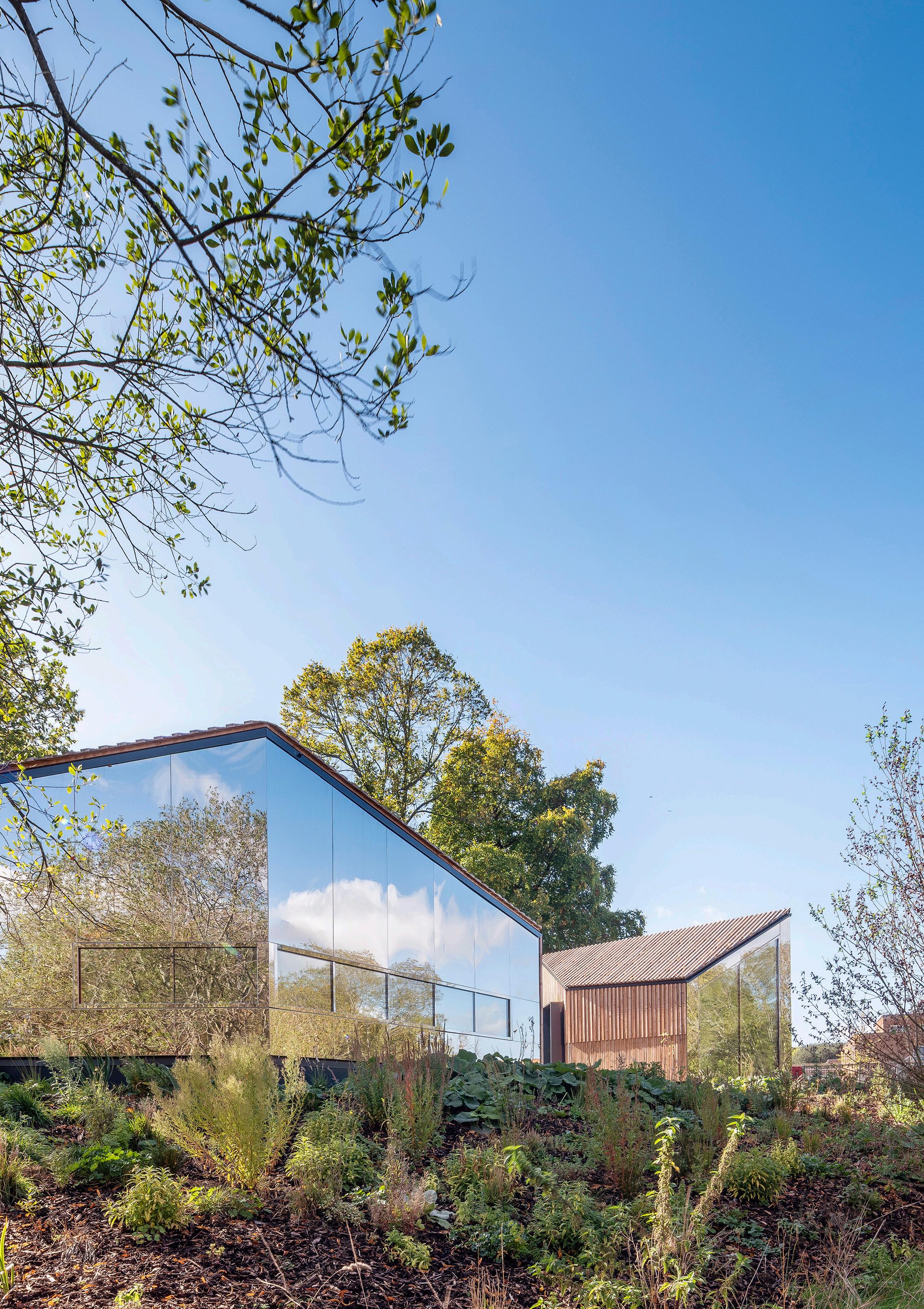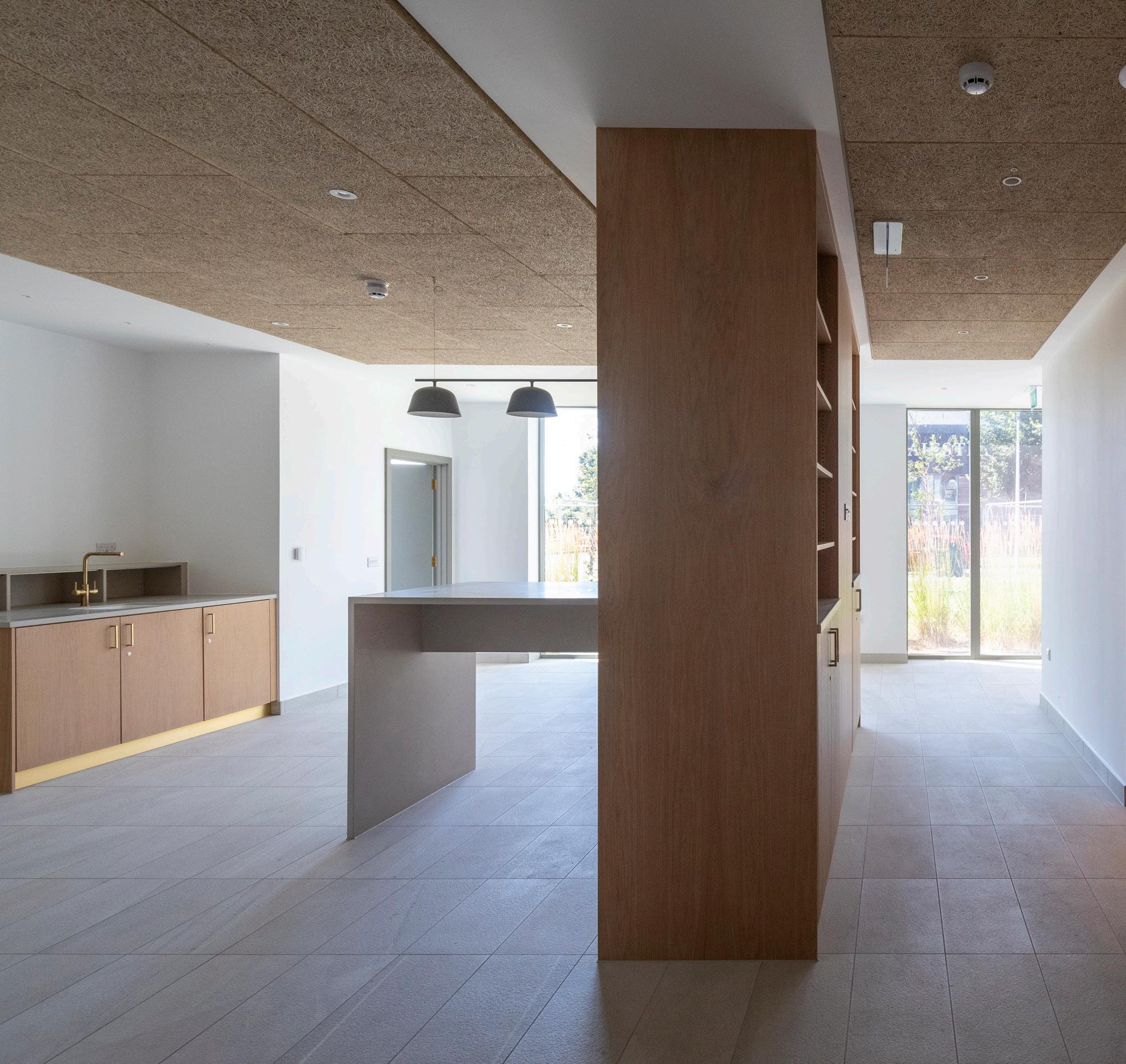The use of timber cladding and CLT minimises the embodied carbon, whilst natural passive ventilation and woodburning stoves minimise energy in use.