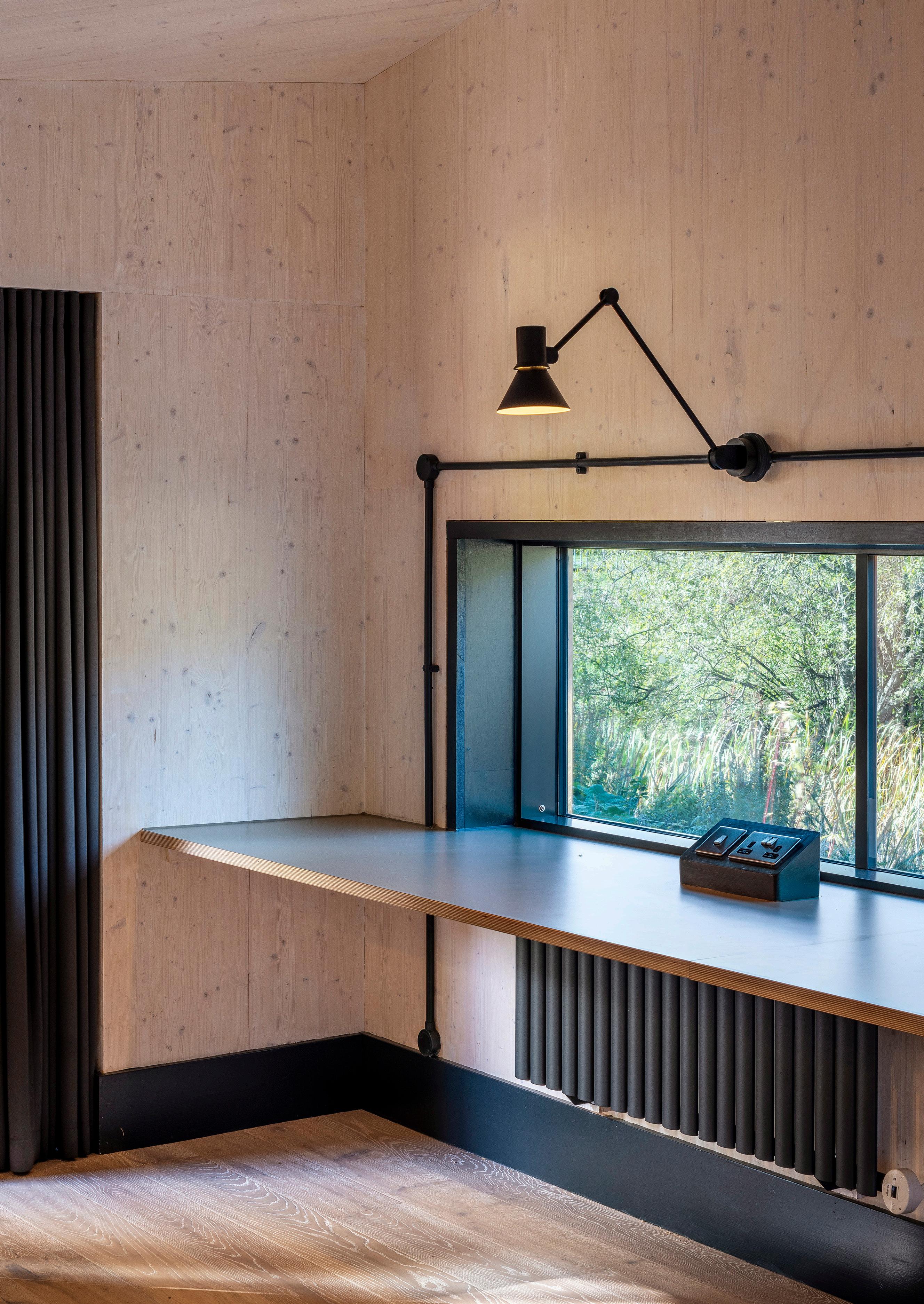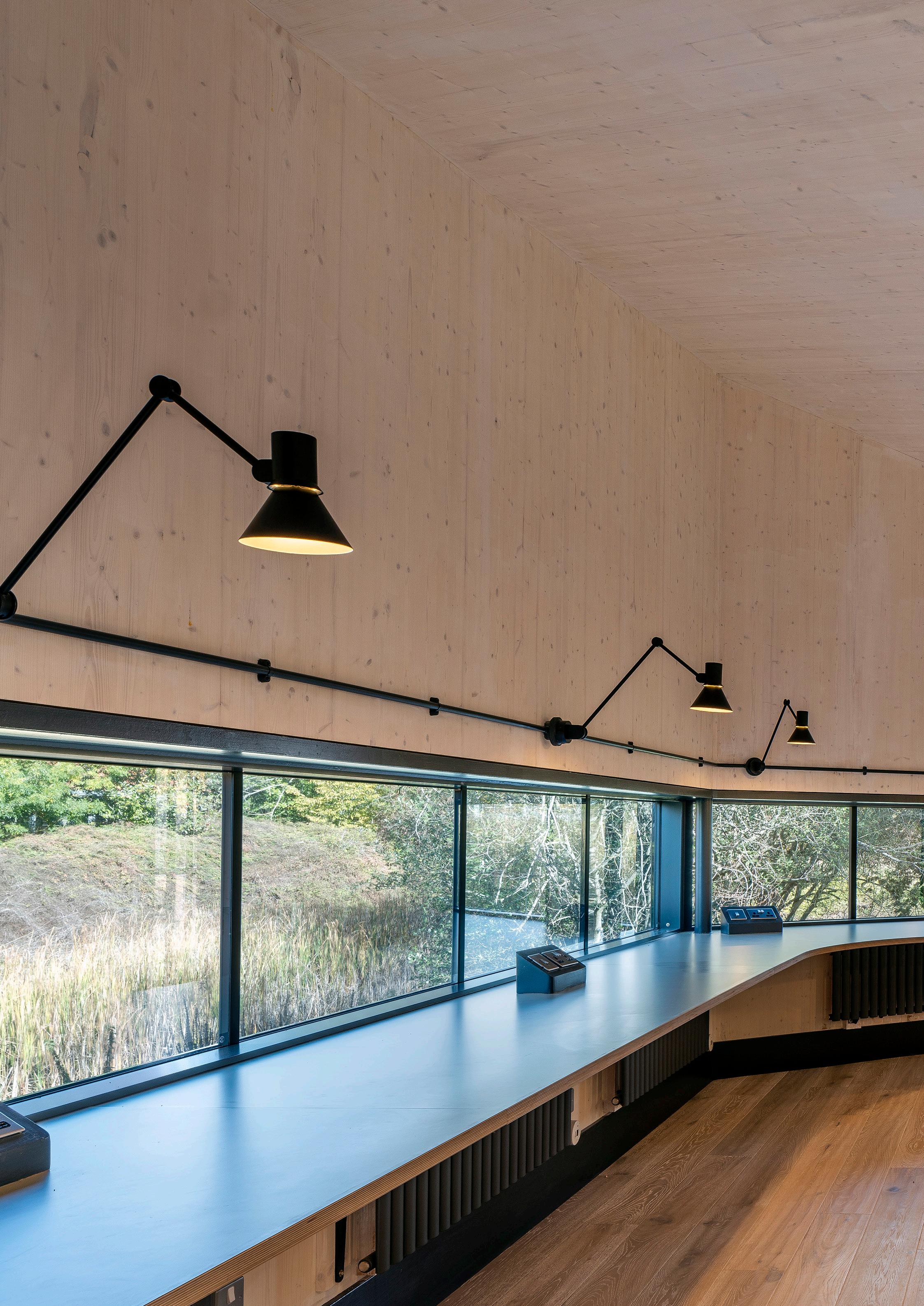 To reduce the impact on the ecology of the site the structure of the Hides will touch the ground very lightly in localised areas, with no major excavation or earthworks, and there will be no hard paved paths or vehicle access. The pavilions have been constructed offsite using cross-laminated timber (CLT) to reduce the impact on the ecology of the site.