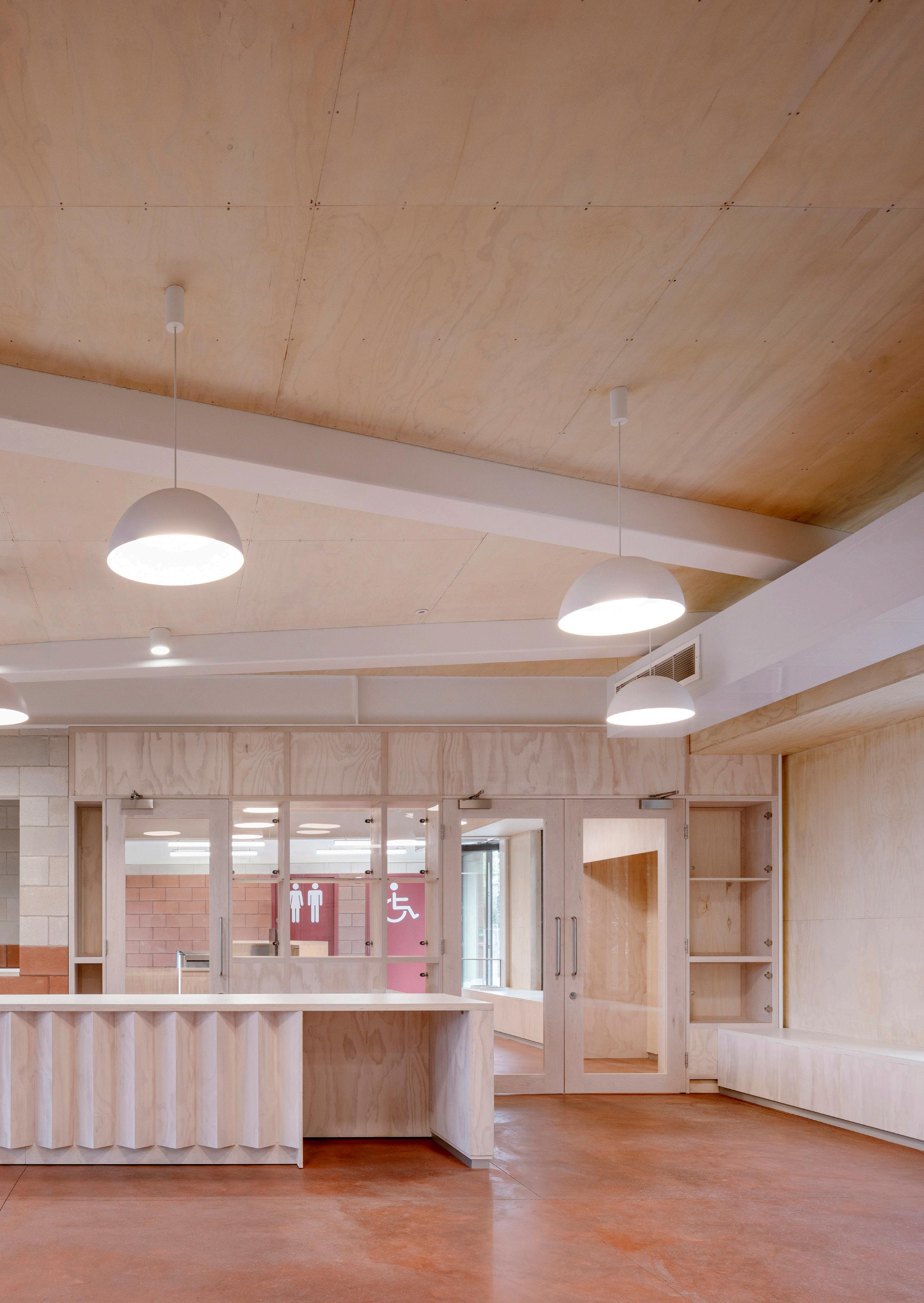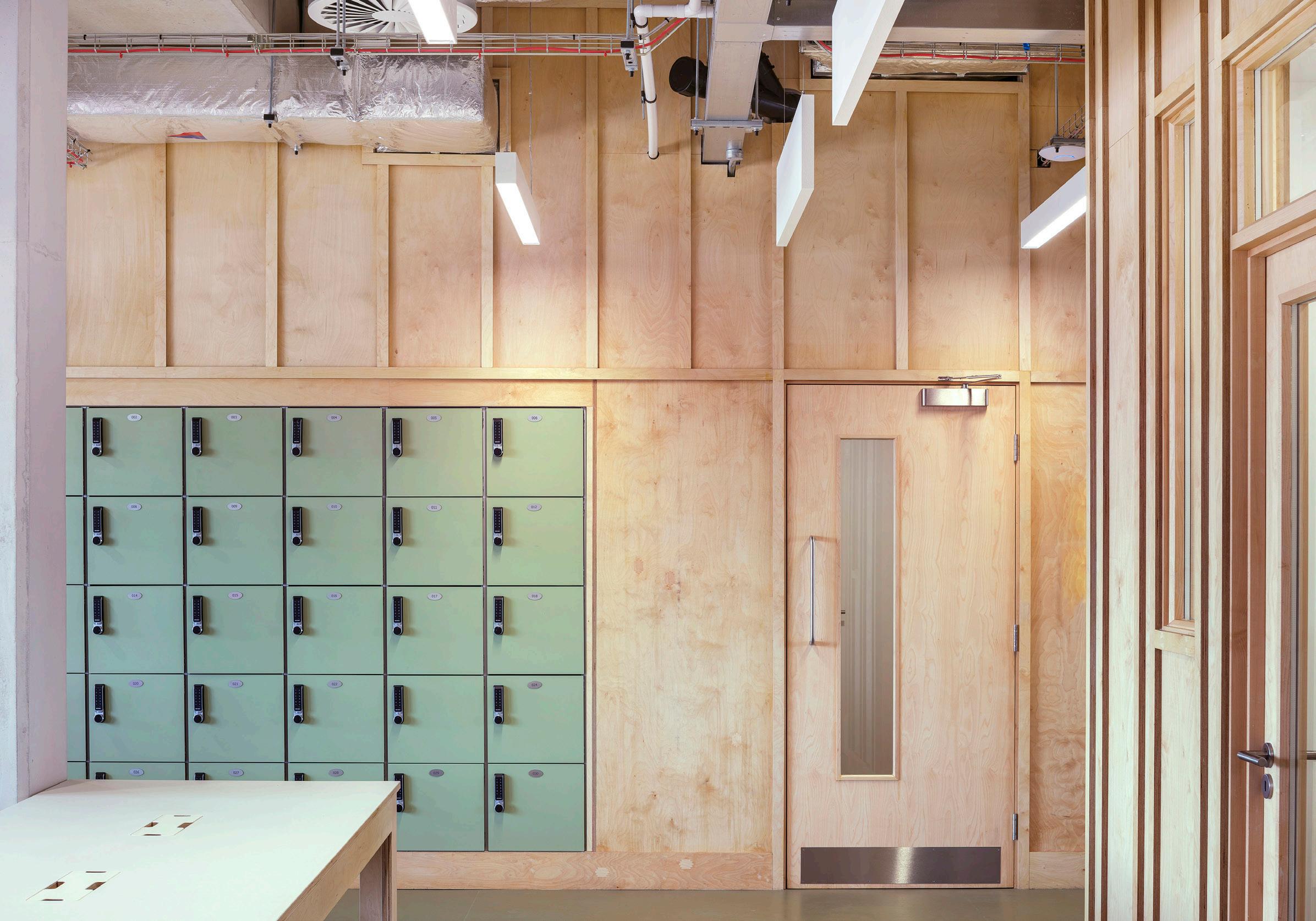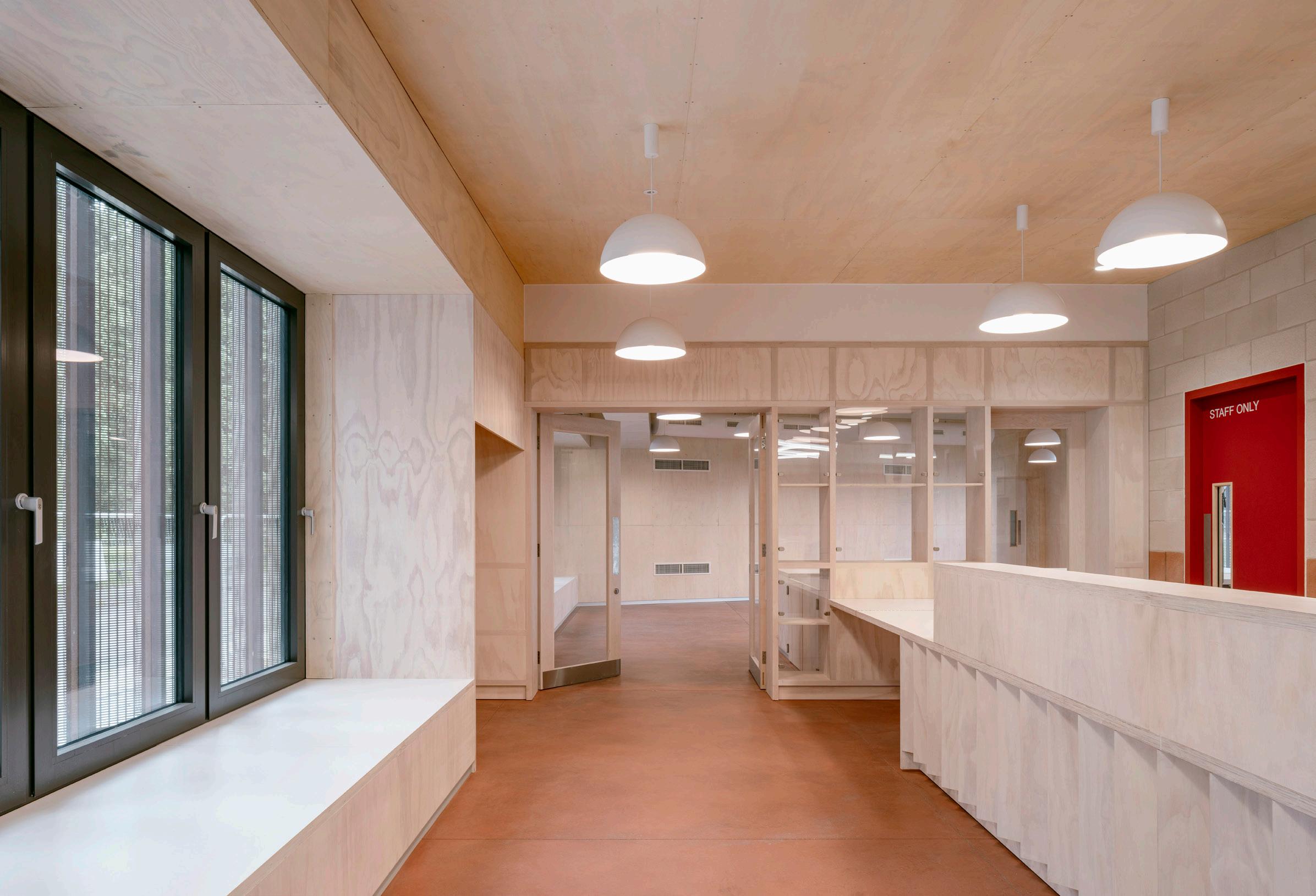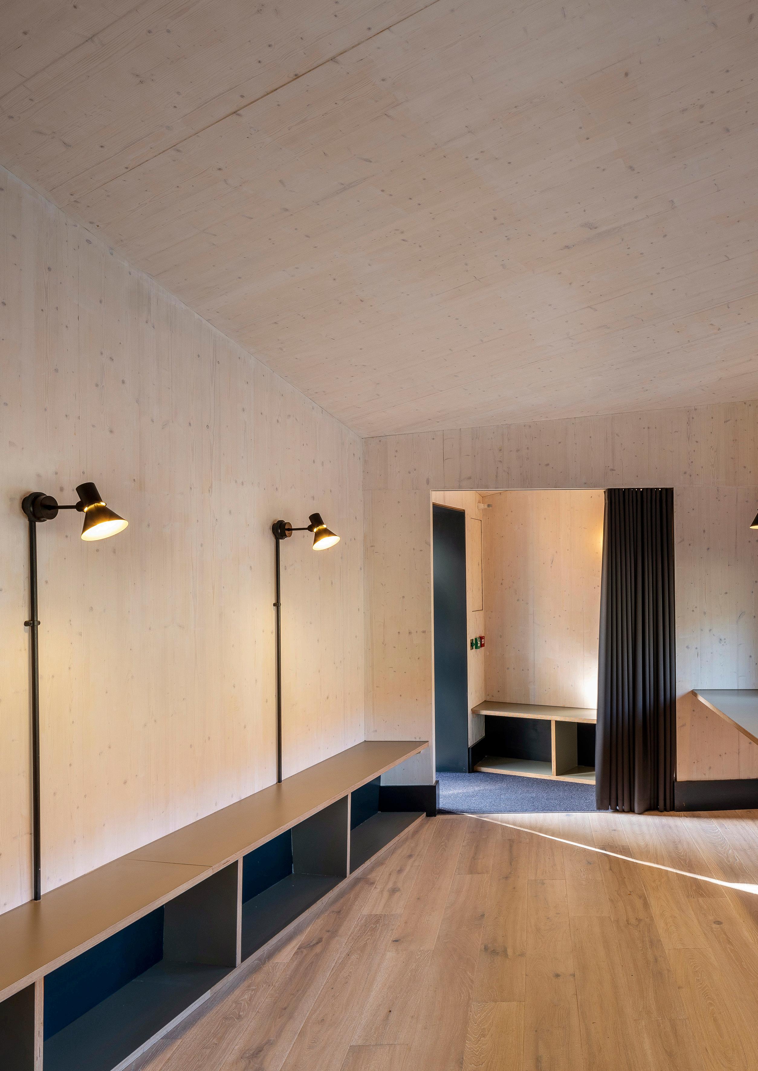The single-story pavilion combines a simple form and robust materials to create a flexible, durable building designed for longevity. It features a thoughtfully integrated range of facilities, including a clubroom, changing rooms, public amenities, and offices for park staff. As an all-electric building, heating is supplied by an air source heat pump, while plywood linings and other low-carbon finishes contribute to its sustainable design. Materials were carefully specified for their low maintenance and recyclability, and a green roof enhances local biodiversity.