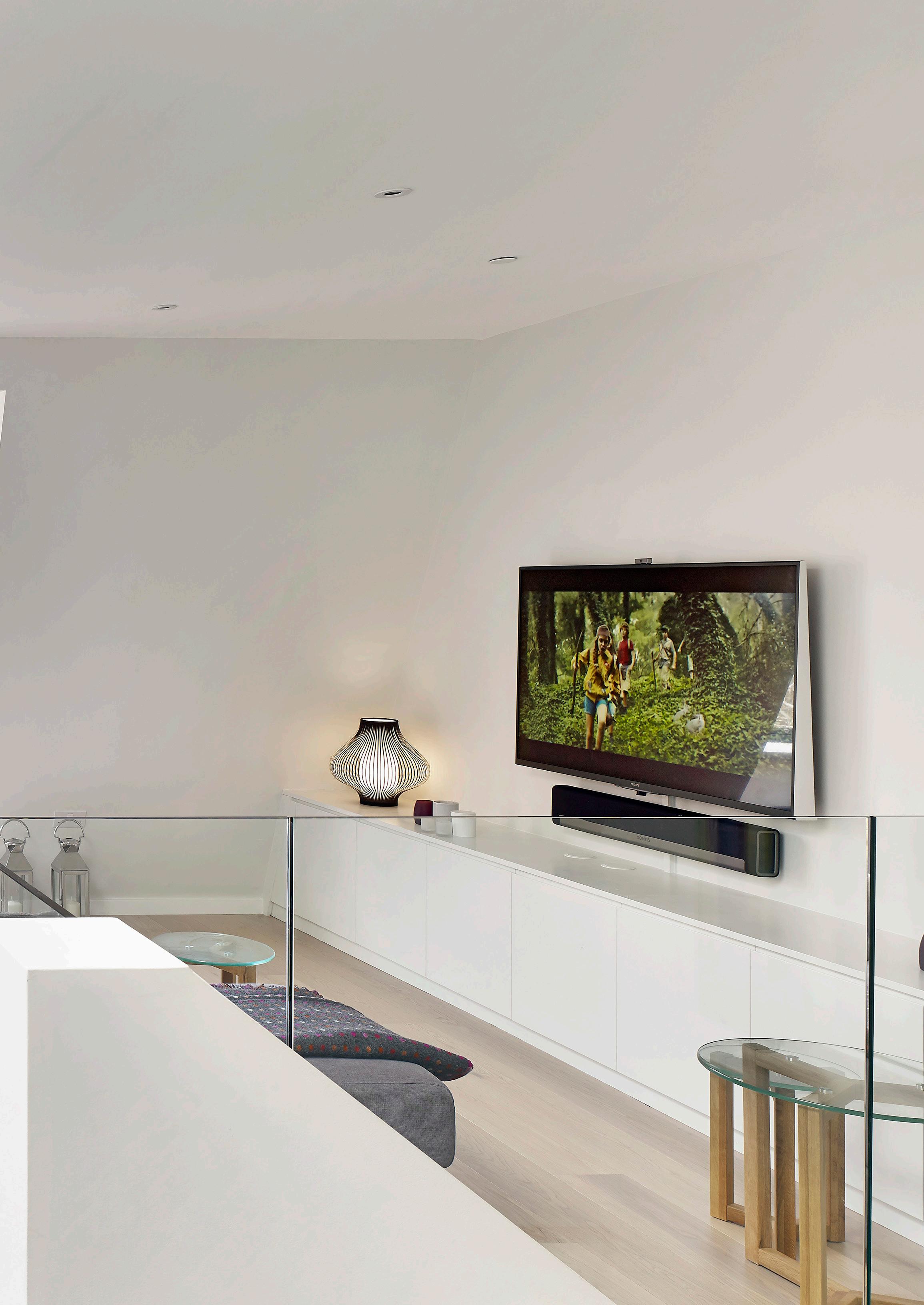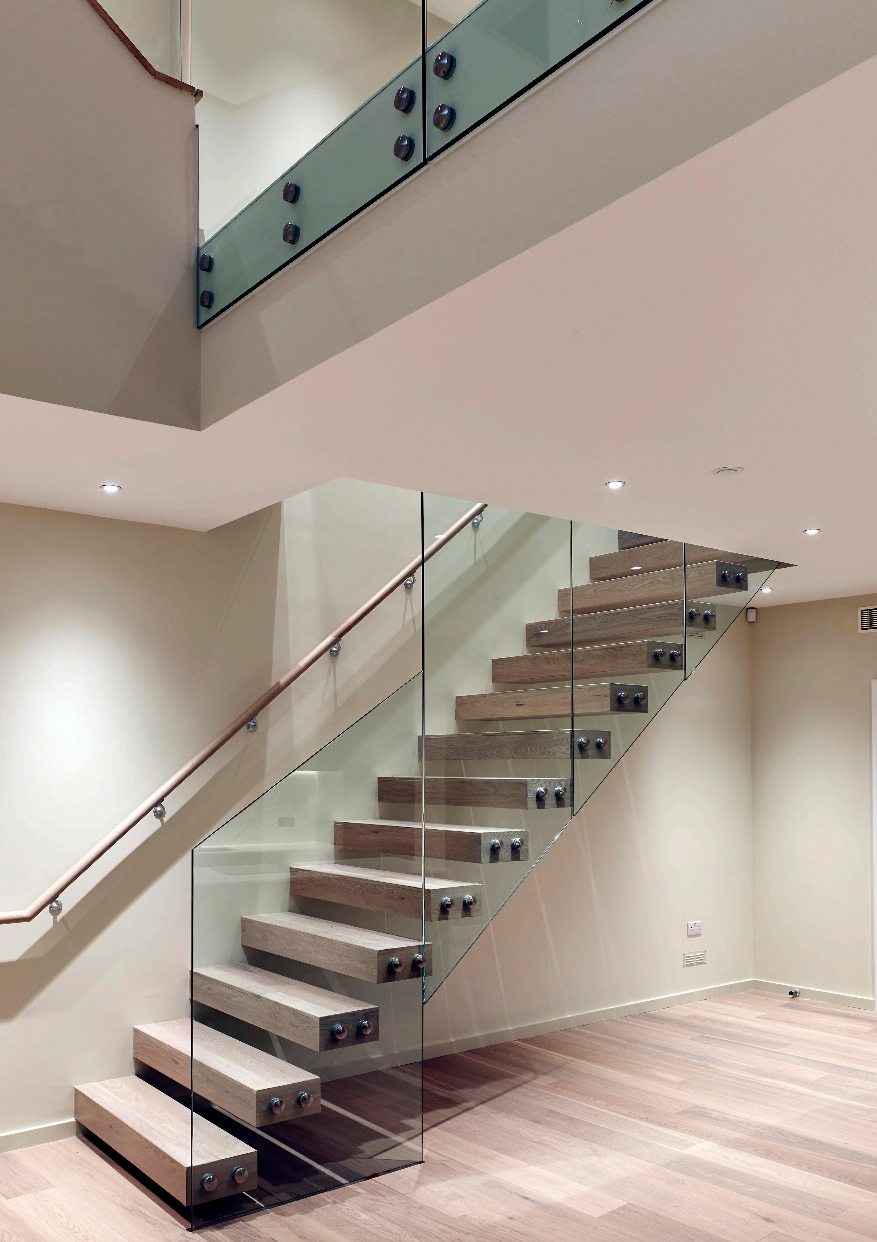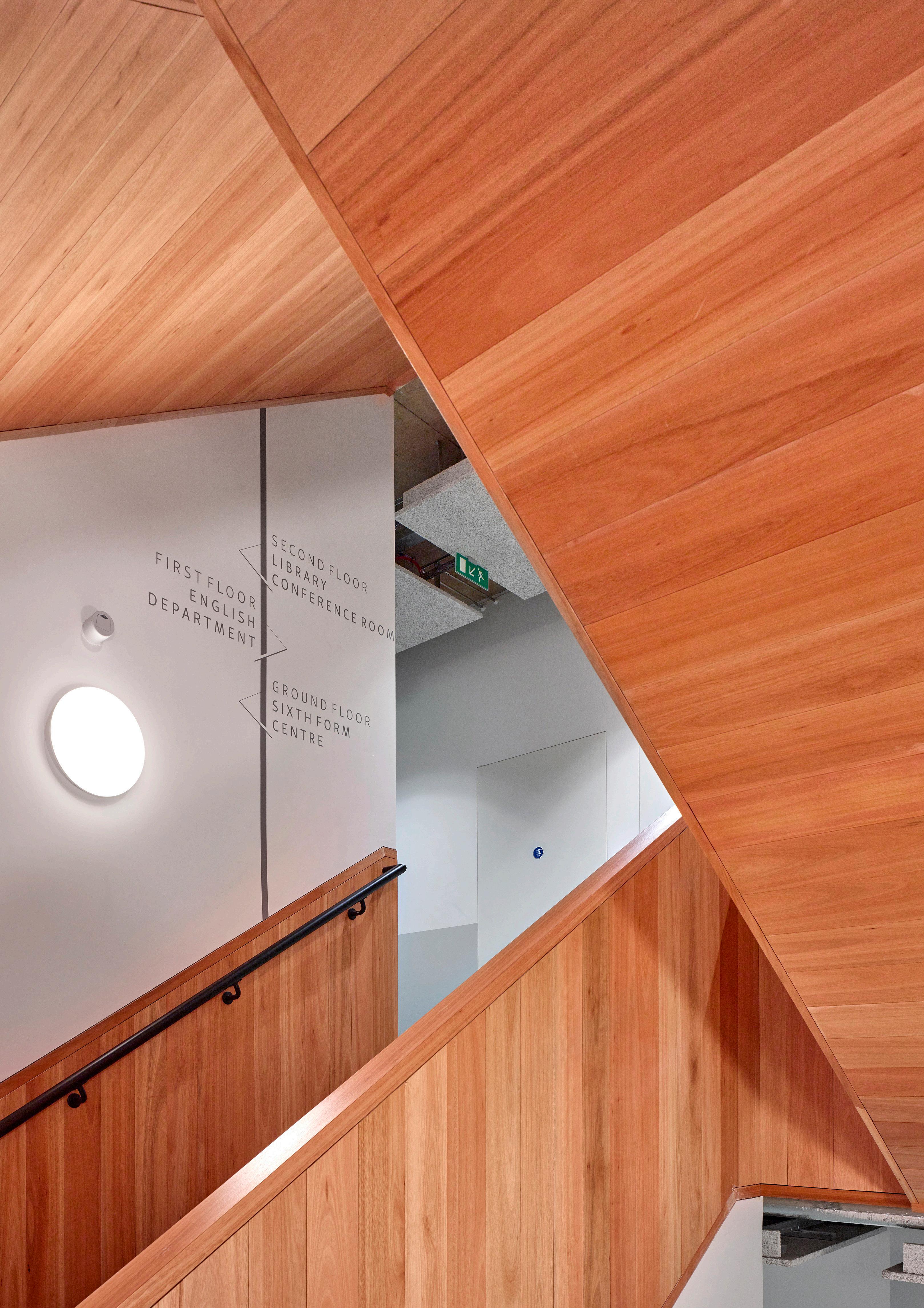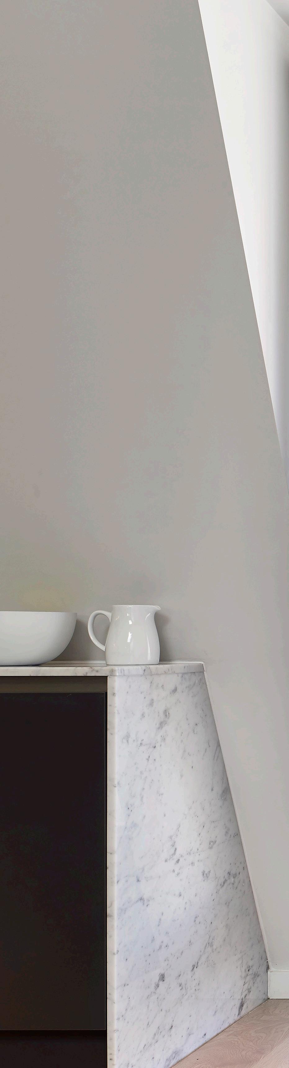 This slimline folded staircase was designed for a private client in Hackney. It connects the ground and mezzanine floors of a studio flat within a historic Victorian schoolhouse, with its minimal design increasing the sense of space and adding a sculpted, elegant form that forms a focal point for the space.