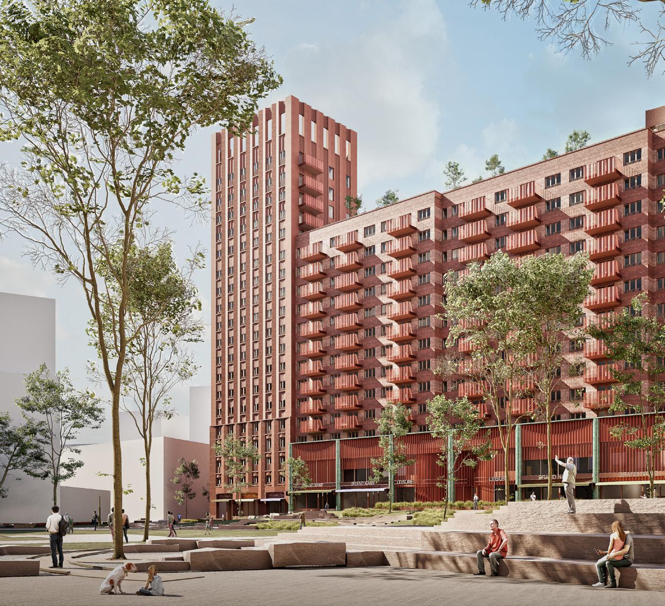 This building will be the first phase in Lendlease and Birmingham City Council’s regeneration of Smithfield in Birmingham City Centre. It will provide circa 380 Build to Rent homes plus extensive retail and a wellness facility, together with rooftop amenities and communal spaces for residents. This development will set the standard for a new high value residential offer in Birmingham, and in terms of architecture this will establish a level of design quality appropriate to Manor Square, located on the site of the original manor house owned by the De Birmingham family, and effectively the historic origin of the city.