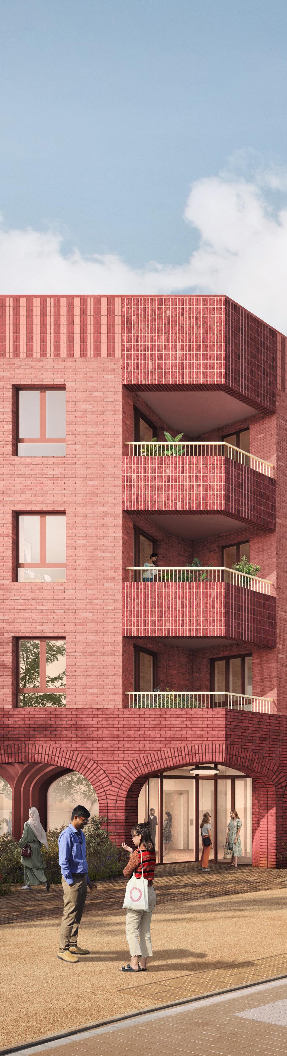 A thoughtfully designed new community in Lambeth, this project delivers highquality housing, generous landscaping and a dedicated community building intended for use as a nursery. Commissioned by Pocket Living, the scheme provides 92 new homes arranged across four distinct blocks, set around a sequence of green spaces.