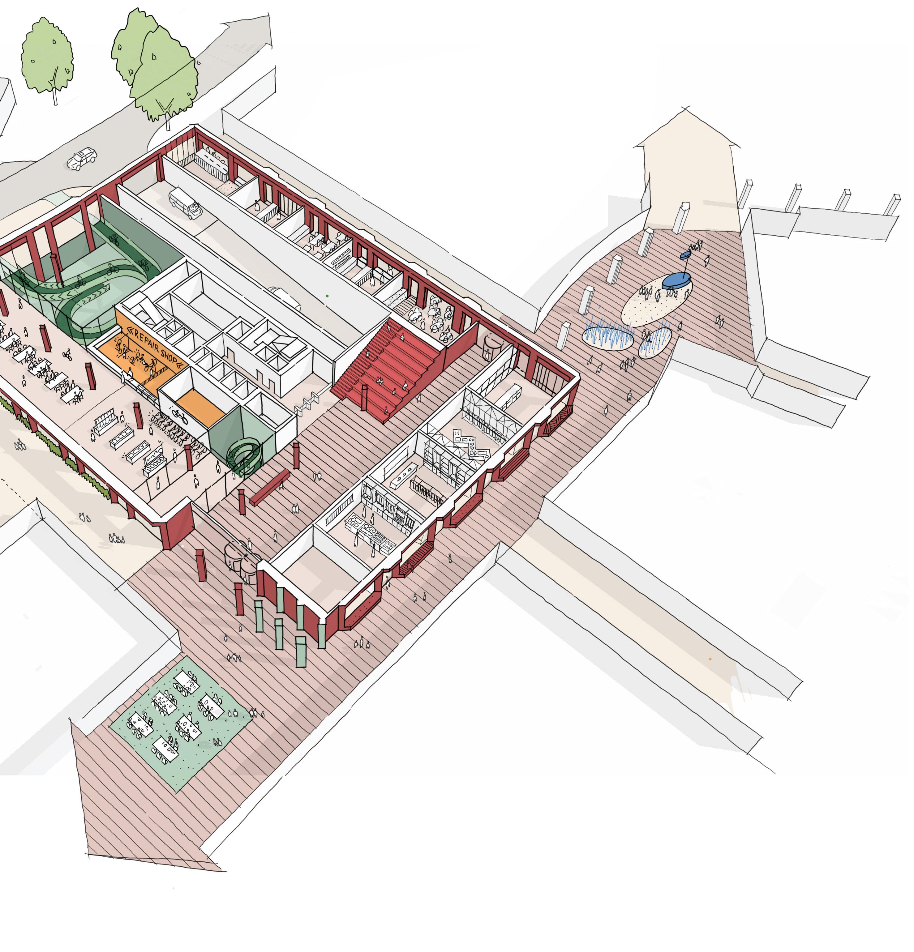 The new community centre is located between the estate and the town. This allows The Community House to engage with the town centre and for the activities of the centre to be projected to a wider audience via a generous ‘shop window’.