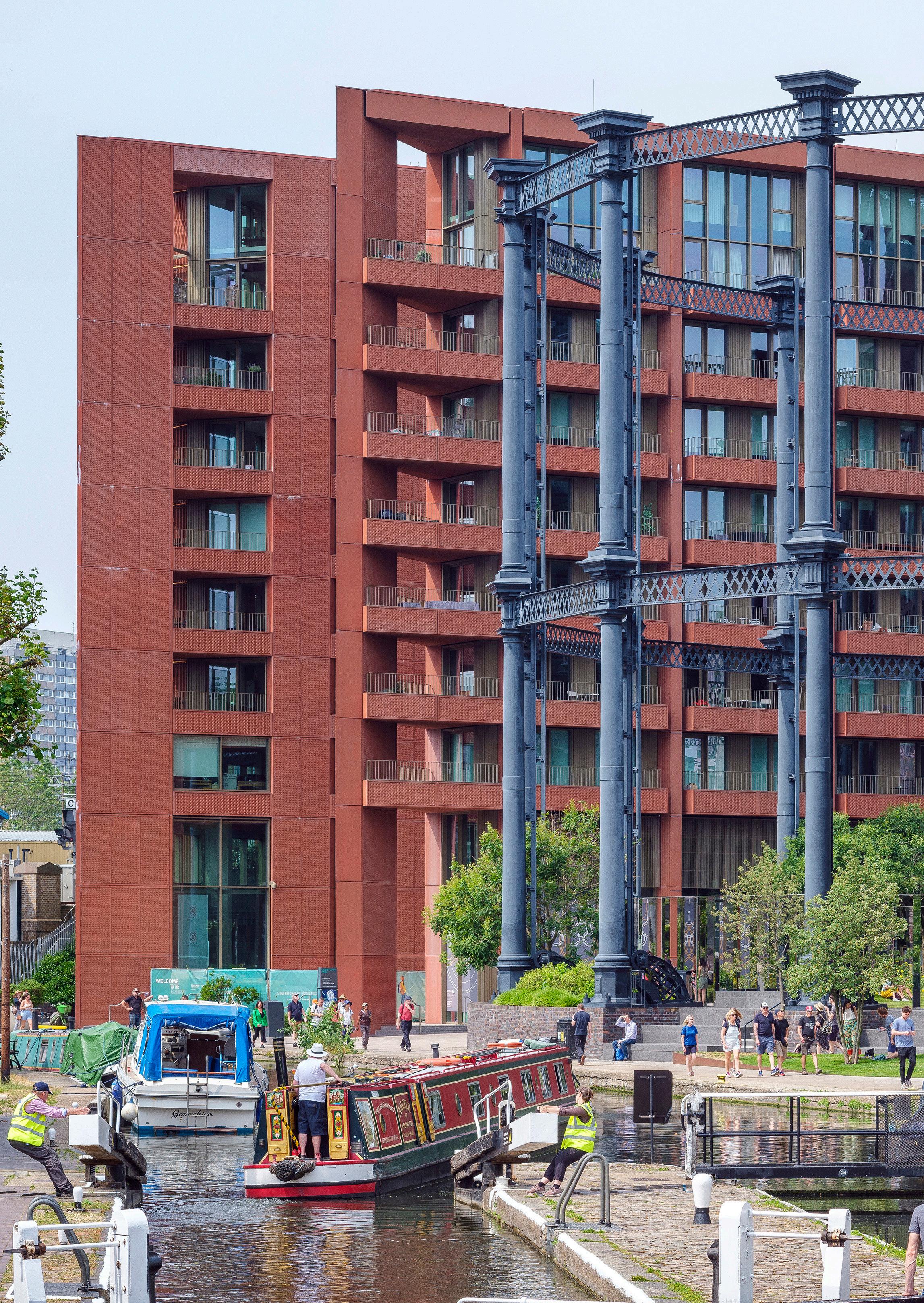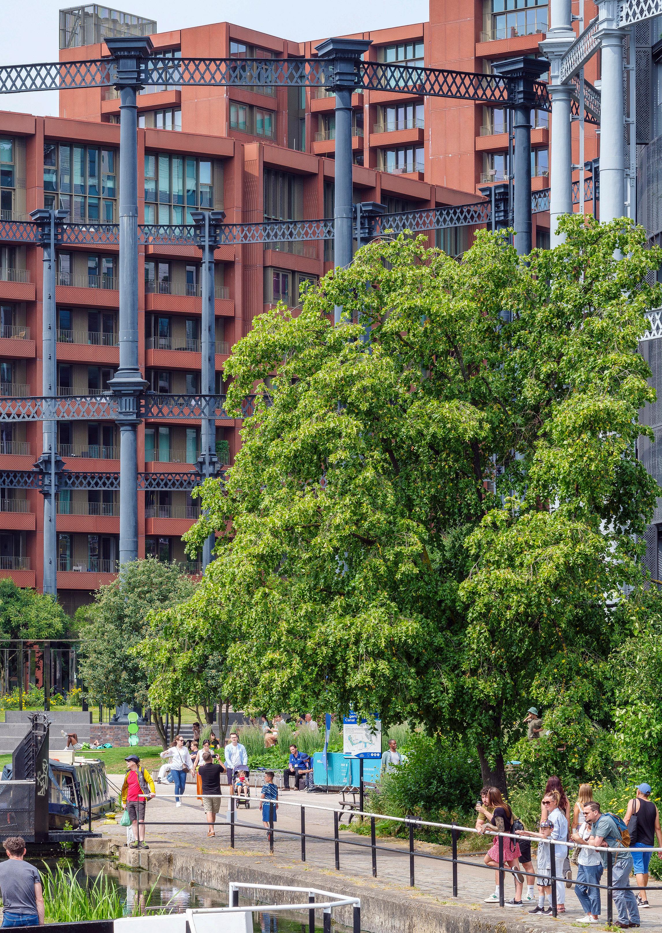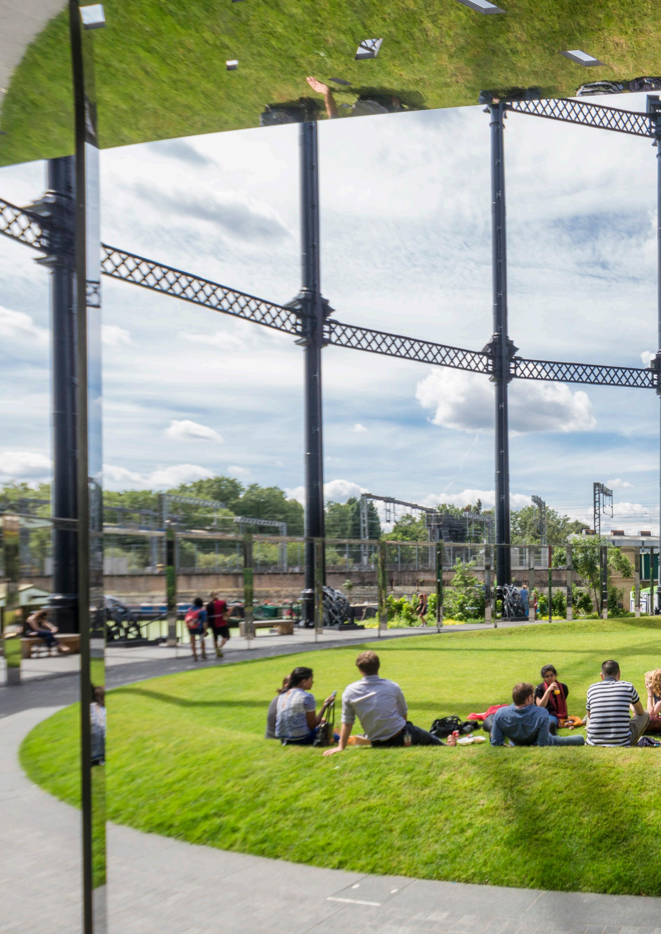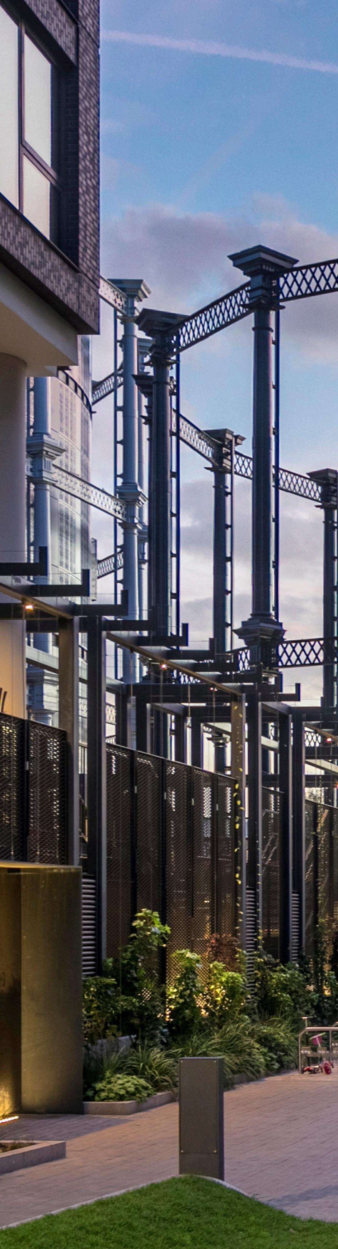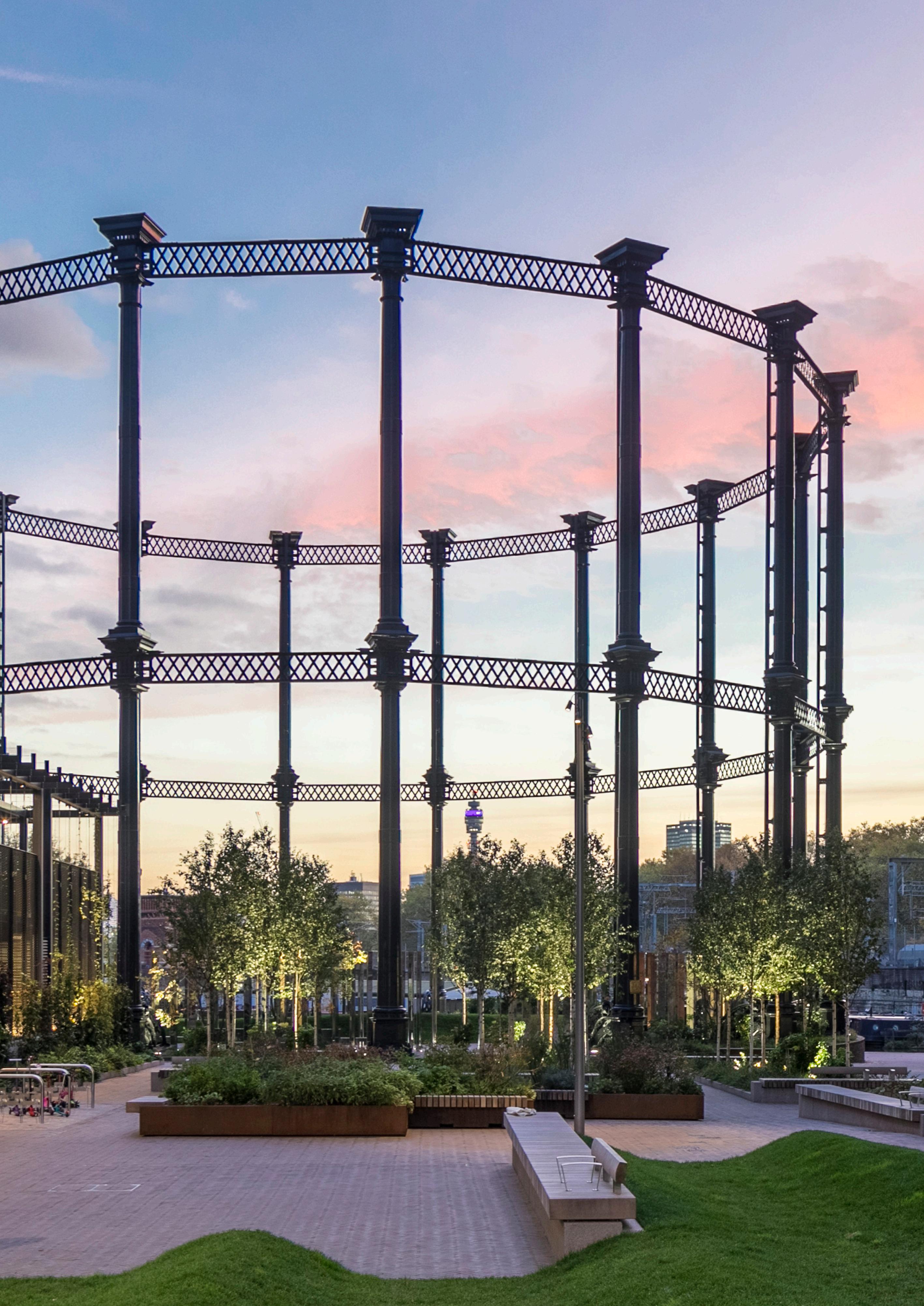As part of the King’s Cross Central Masterplan, Gasholder No.8 was dismantled, refurbished, relocated and remodelled as a new pocket park on a new site adjacent to the Regent’s Canal alongside the Gasholder Triplets which have been remodelled as apartments.