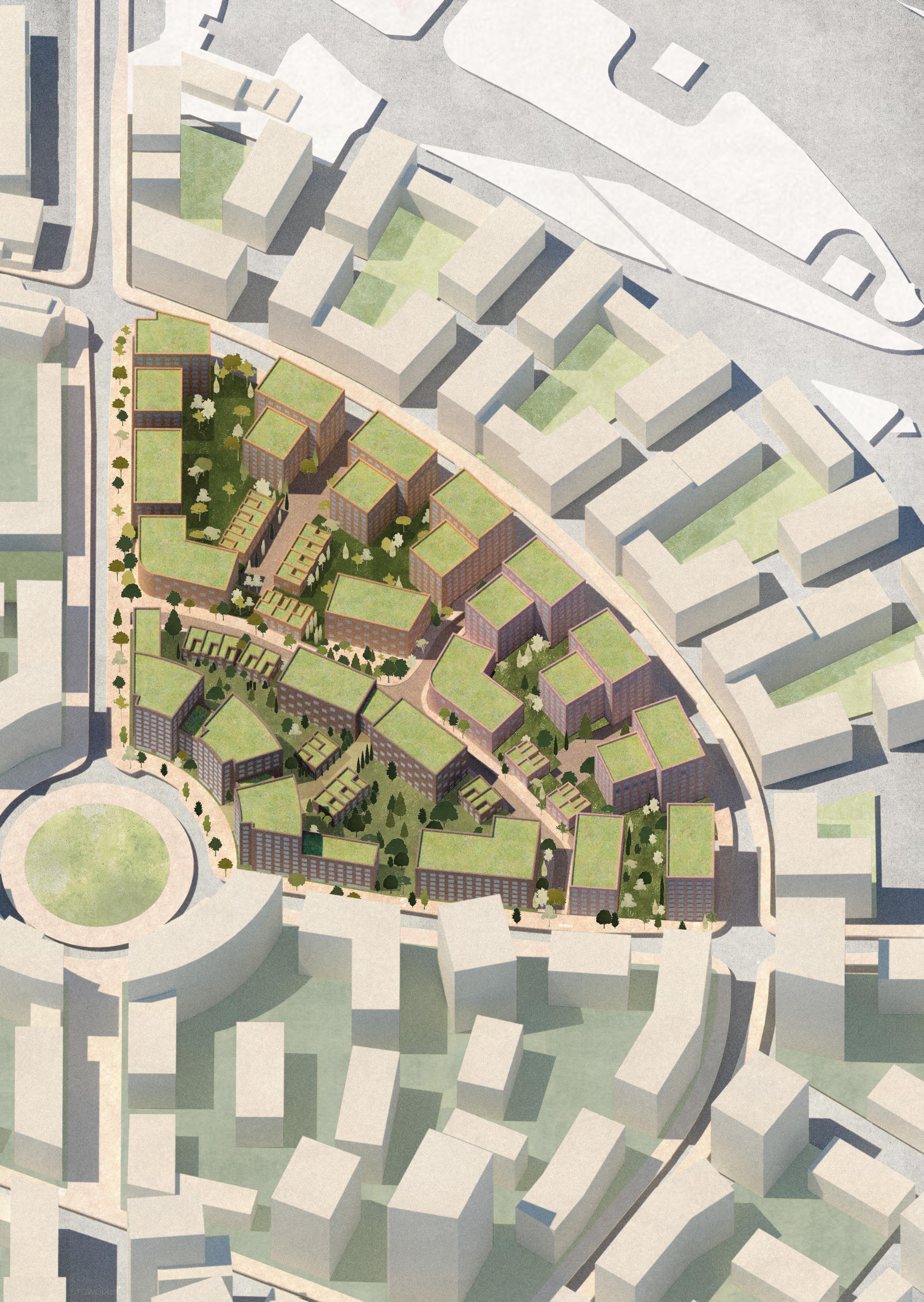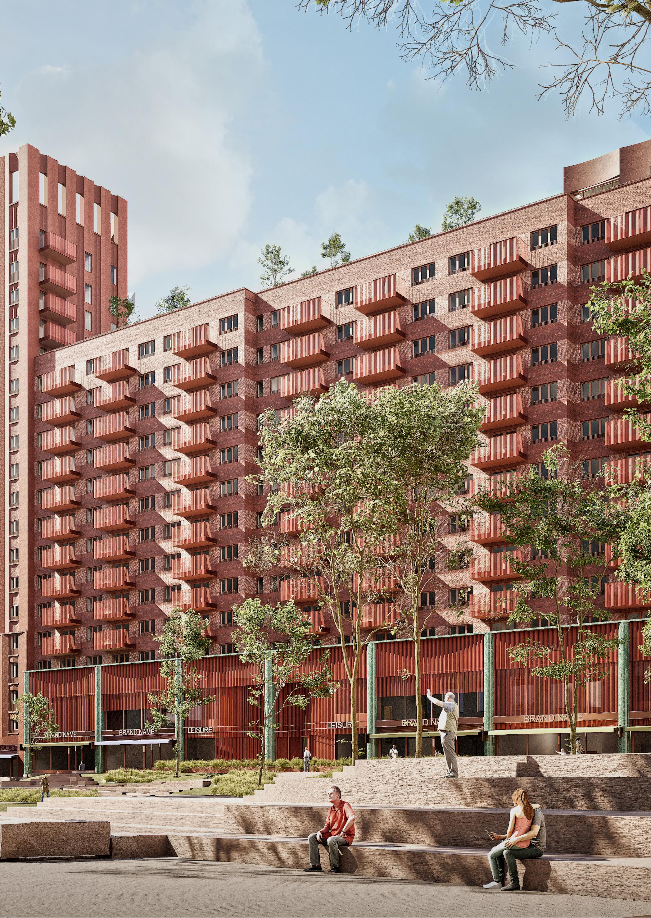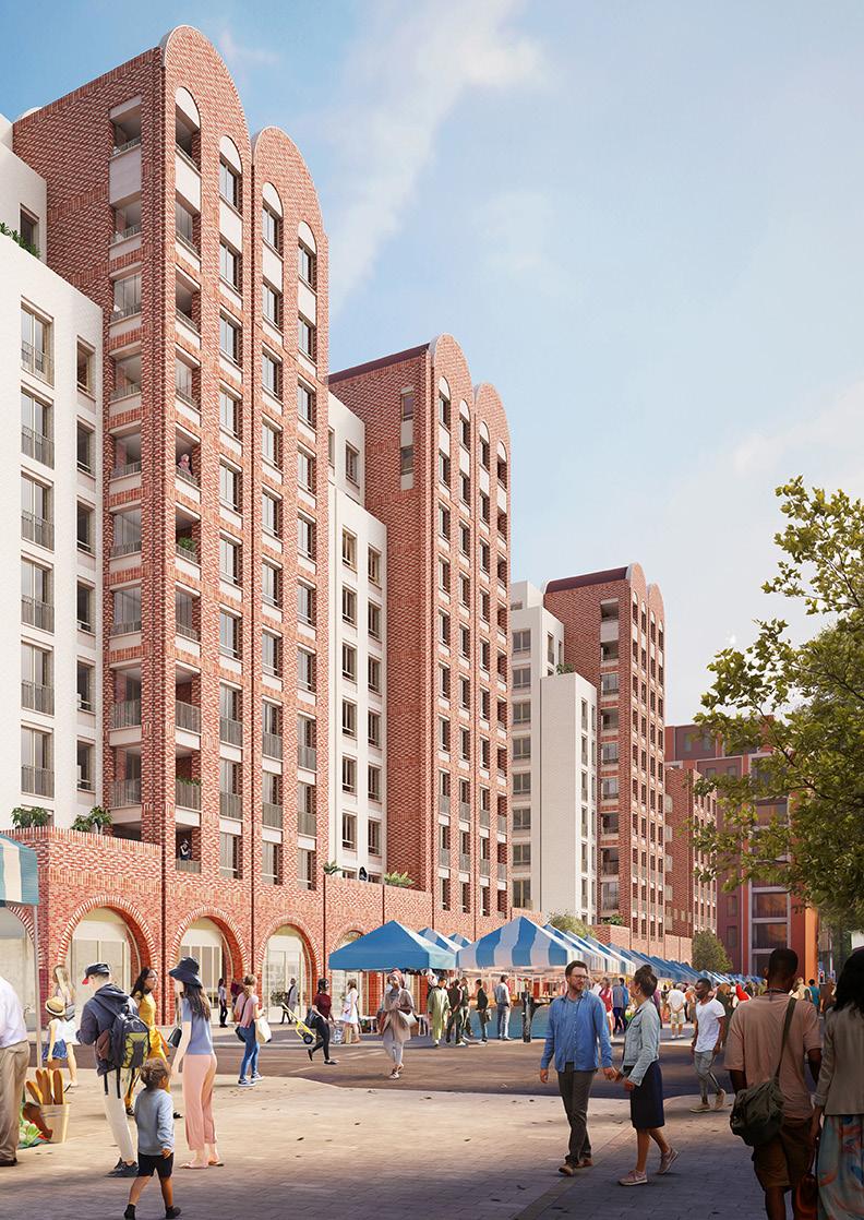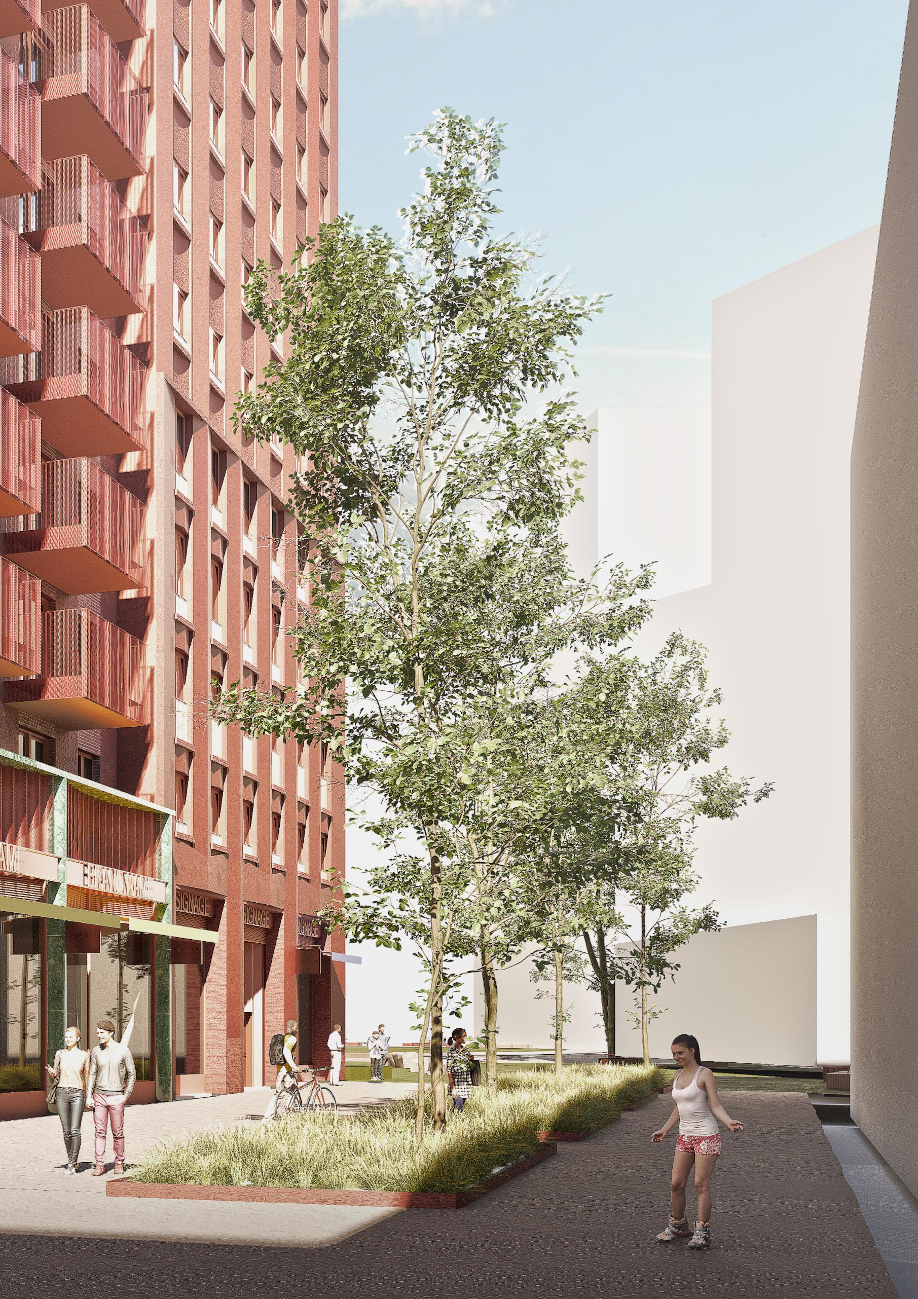 We are working on the Detailed Component of the hybrid planning application, alongside Haworth Tompkins and Jas Bhalla Works. This phase comprises approximately 800 homes, retail and employment spaces, and strategic green infrastructure, all designed in detail alongside the overarching masterplan.