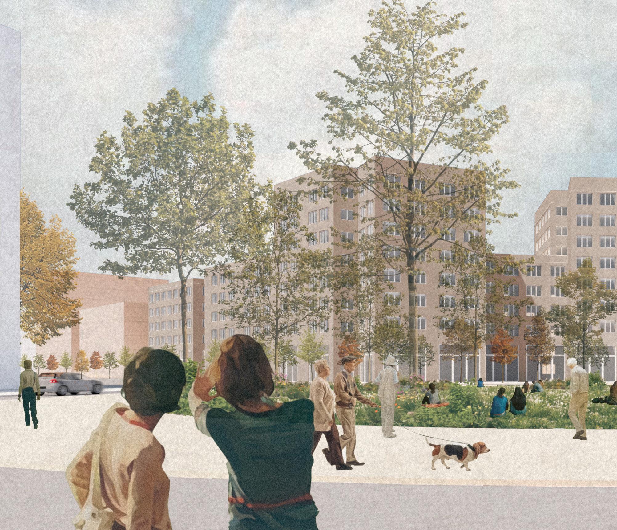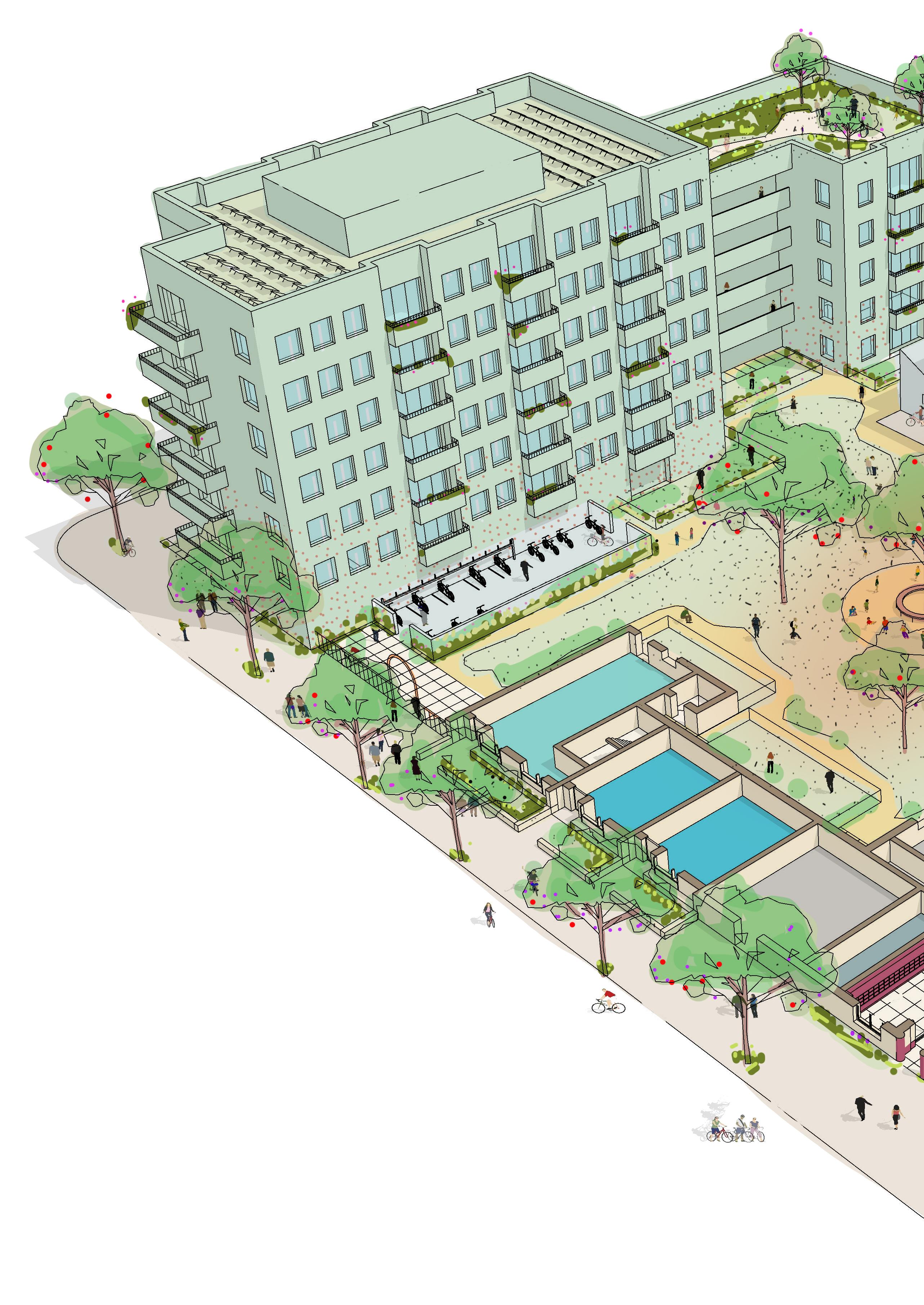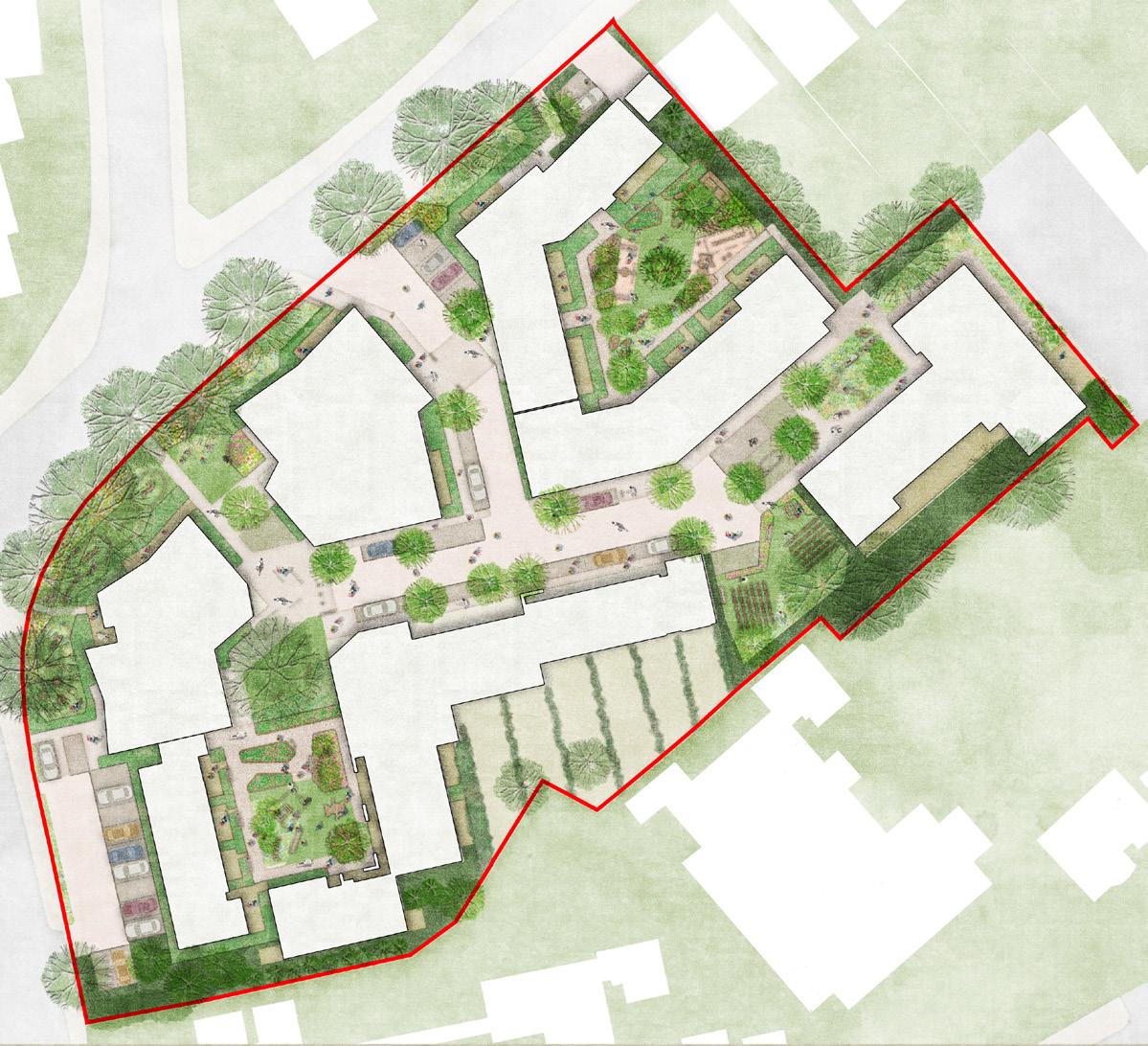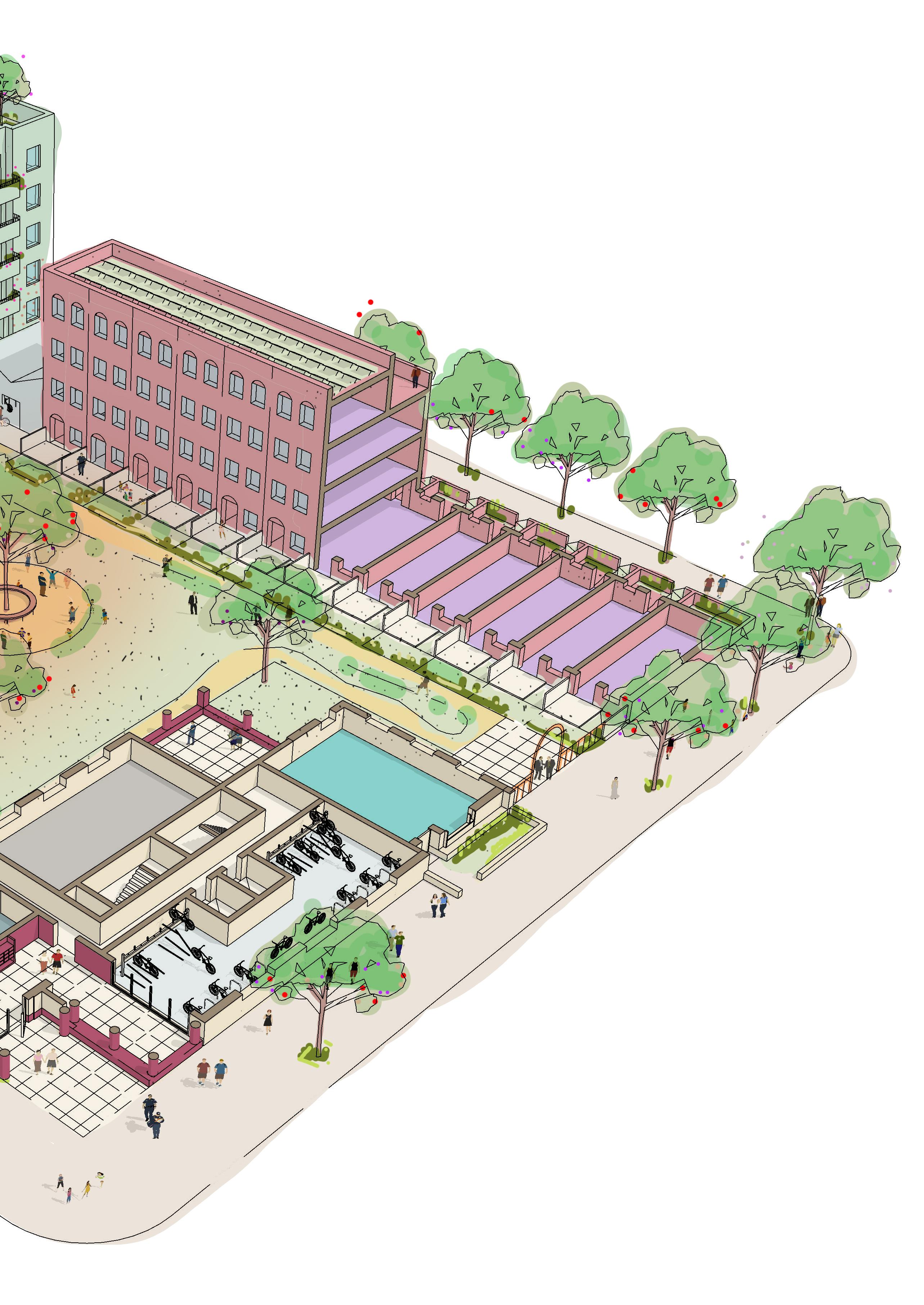 We are working on the Detailed Component of the hybrid planning application, alongside Haworth Tompkins and Jas Bhalla Works. This phase comprises approximately 800 homes, retail and employment spaces, and strategic green infrastructure, all designed in detail alongside the overarching masterplan.