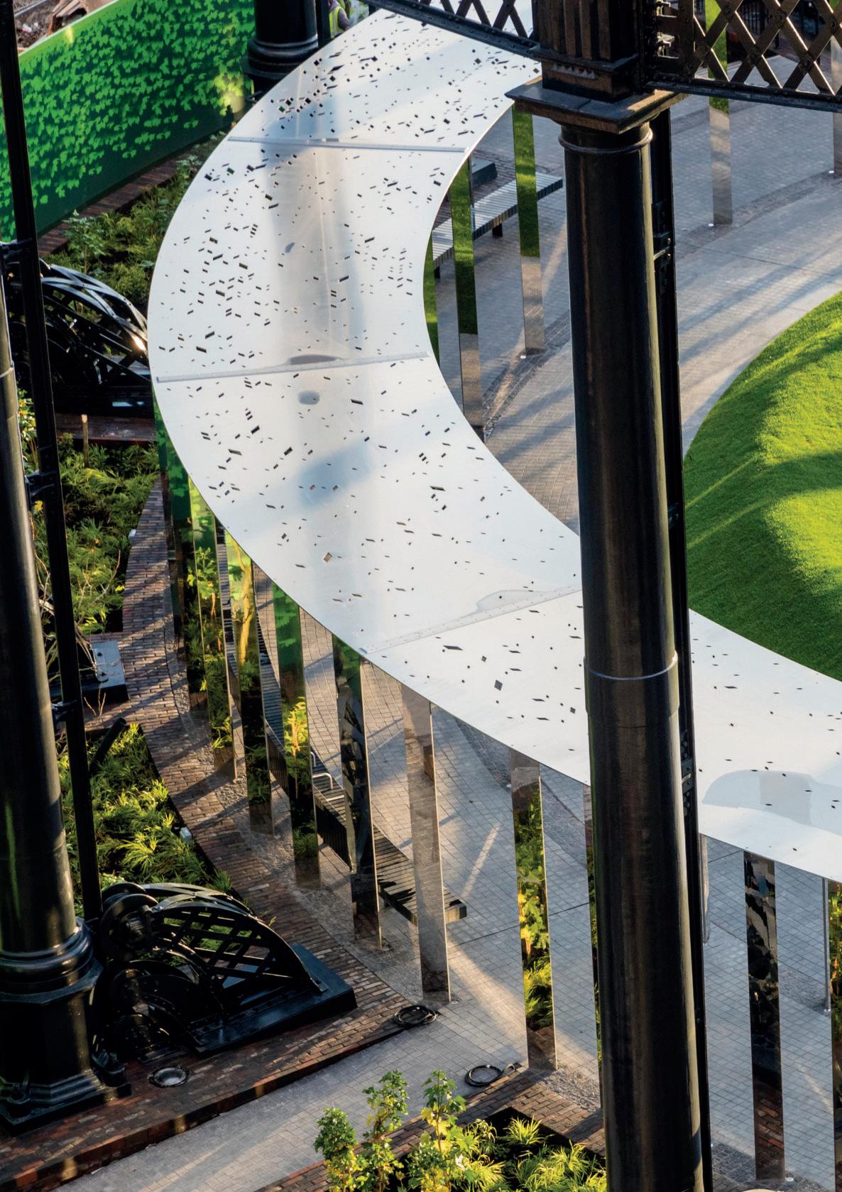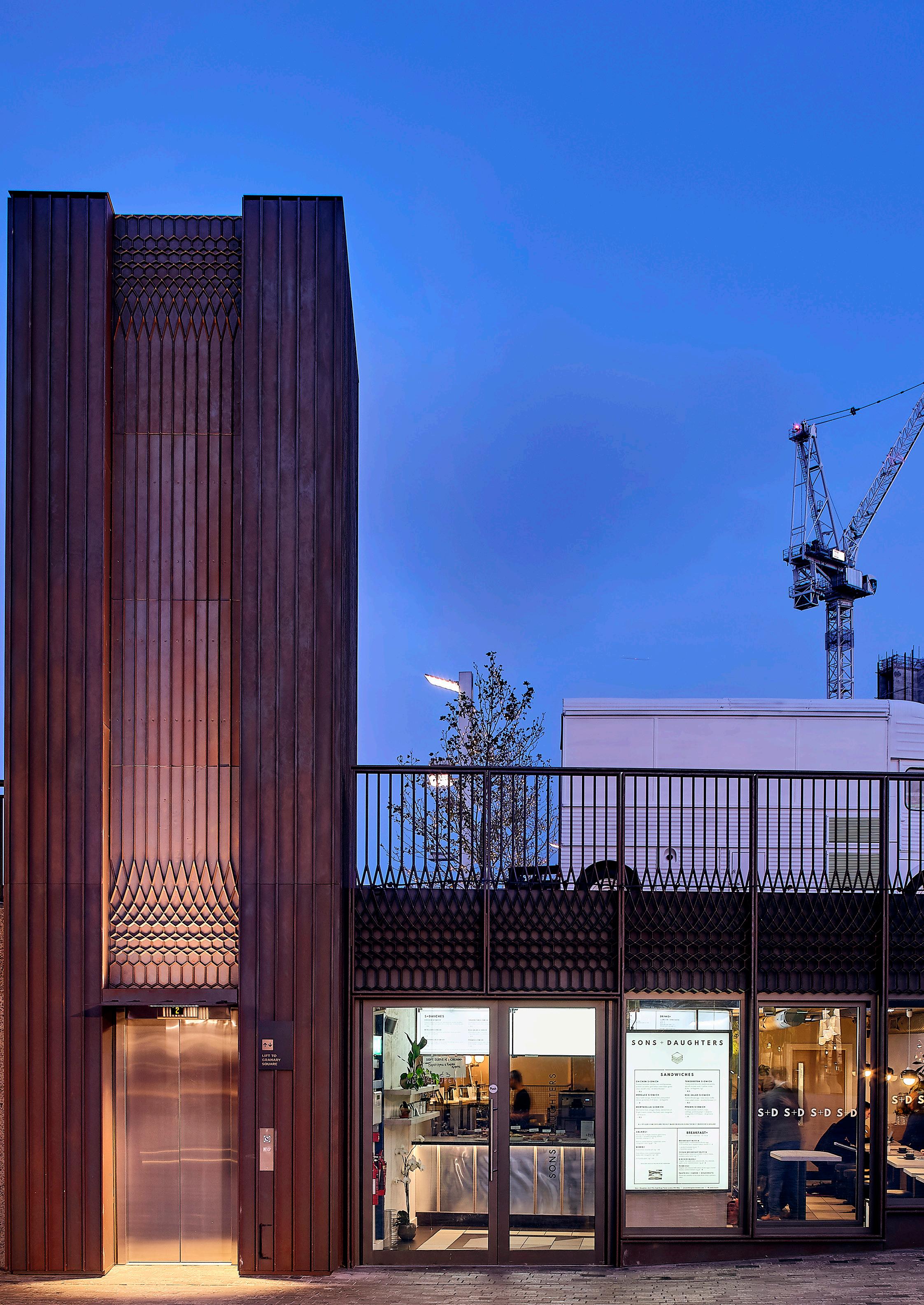 Elephant Park is at the heart of a £2.3 billion regeneration led by Lendlease, which will create 3000 new homes and establish one of London’s best new open spaces. This new pavilion for Lendlease is the centrepiece of the new park, accommodating WCs, food and beverage kiosks, a new community space and a viewing terrace.