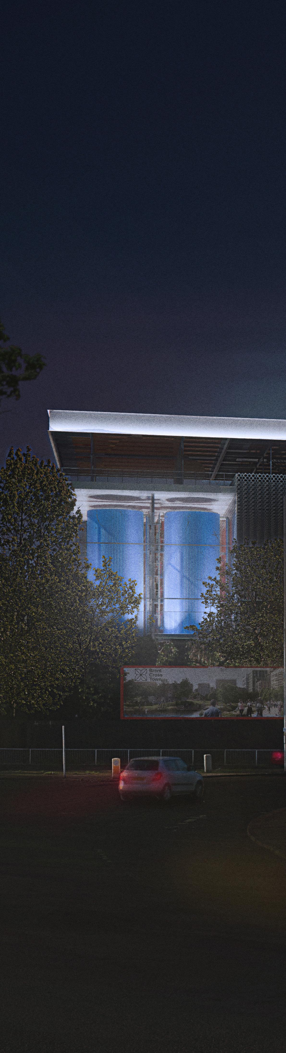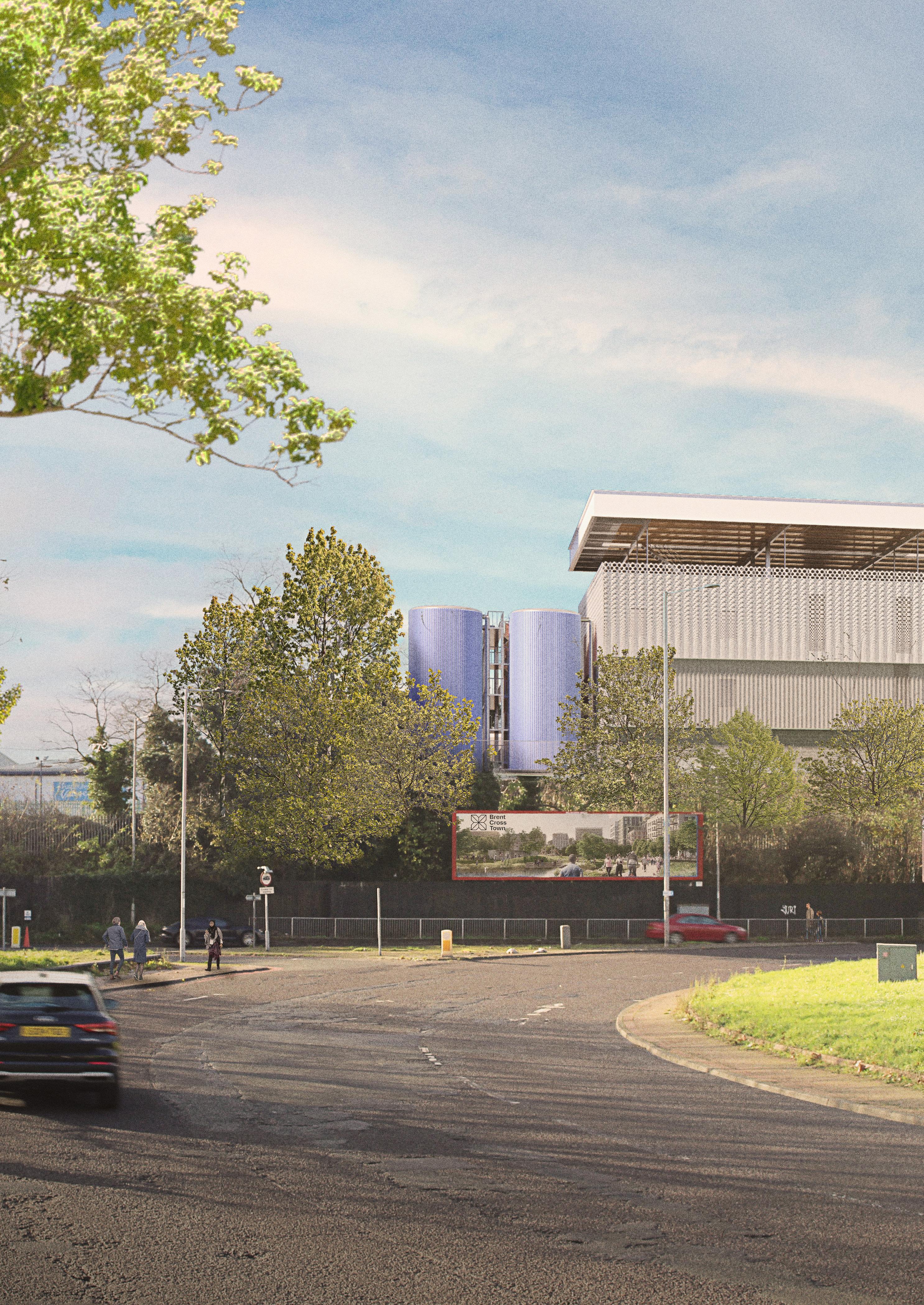 The energy centre is designed to be constructed in two phases to respond to increasing energy demand. Internally, plant rooms shape the footprint, with integrated spaces for staff and visitors including a workshop, mess room and viewing areas to support educational visits. External thermal stores and rooftop fans are integral to the visual and technical identity of the building, forming a dynamic and distinctive silhouette against the North London skyline.