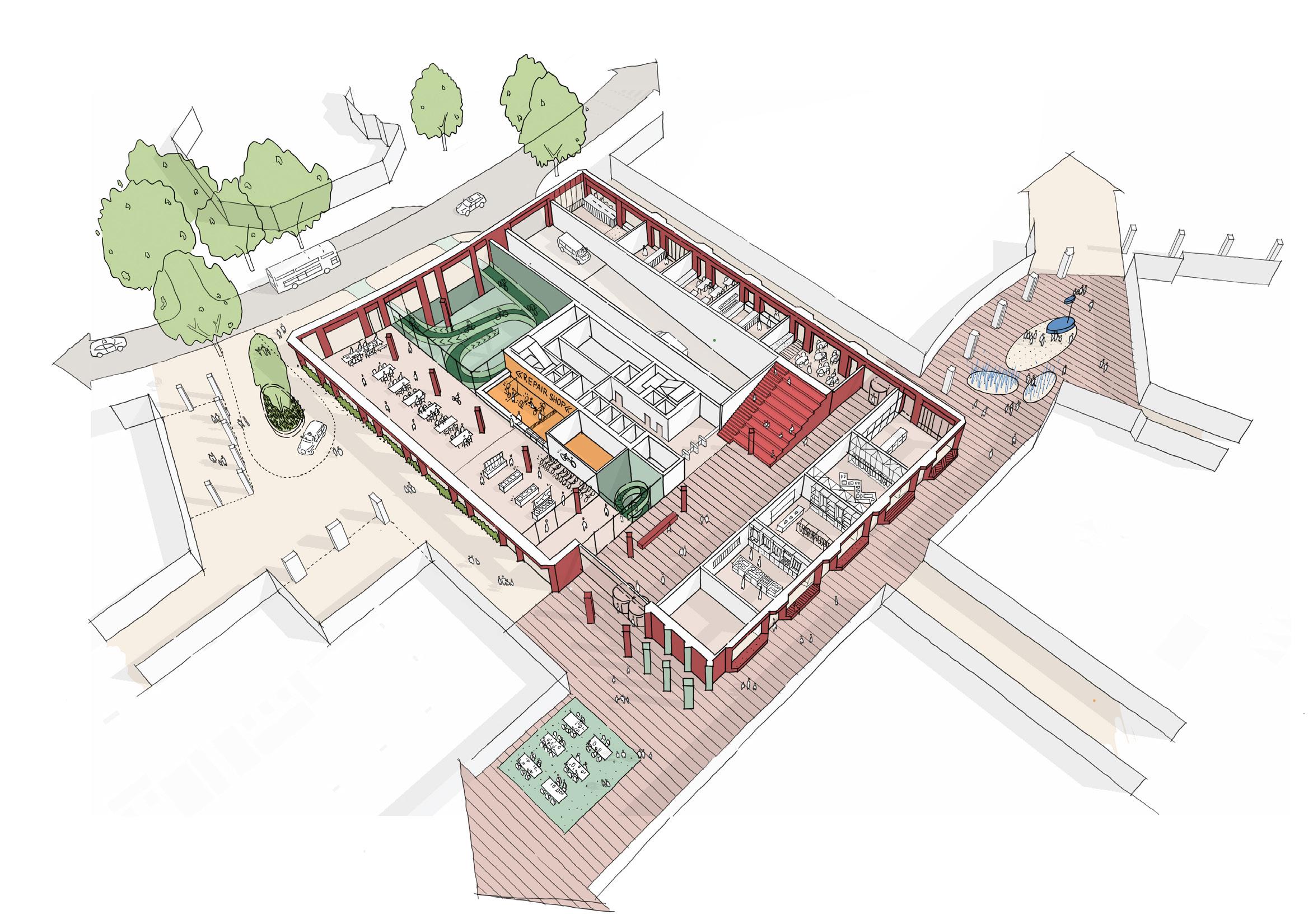 The original outline consent for the site predicted a building would lie to the north of the plot with play space to the south. From the outset, this posed an issue; the play space would be exposed to the busy Celebration Avenue creating an unsafe environment for the public realm. This fueled the ambition of the design to create a safe and sheltered play area to enhance the public realm, and at the same time, to create a striking shape within an unusually shaped plot.
