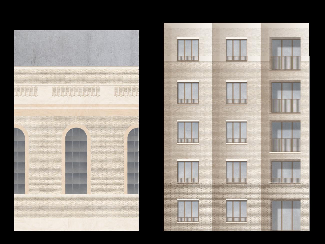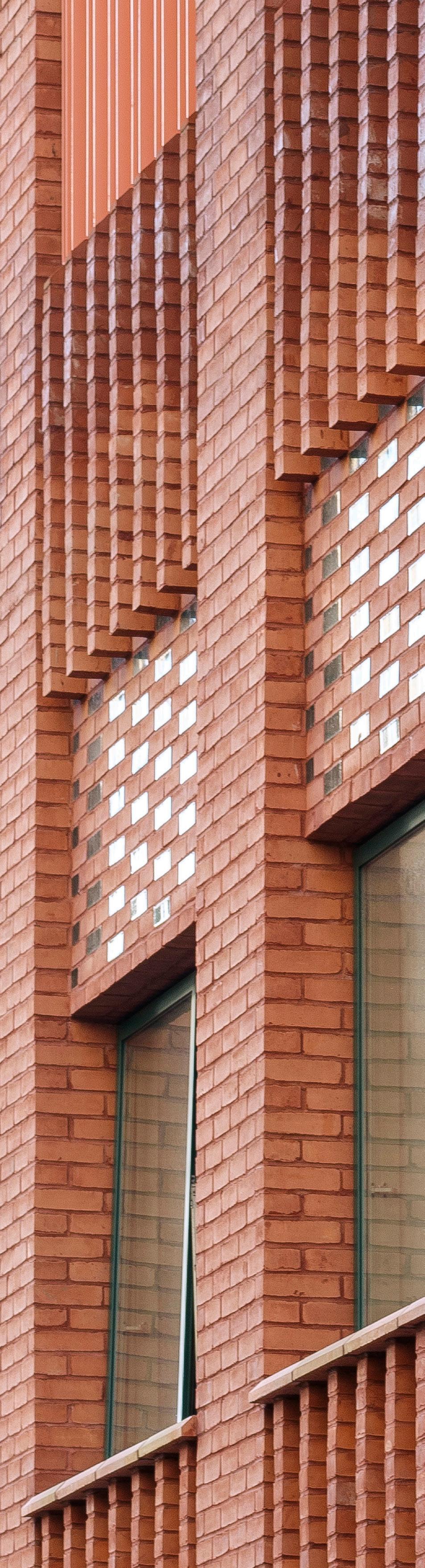 The brick flutes vary on the different elevations in response to the adjacent buildings giving the proposed building both consistency and sensitivity.