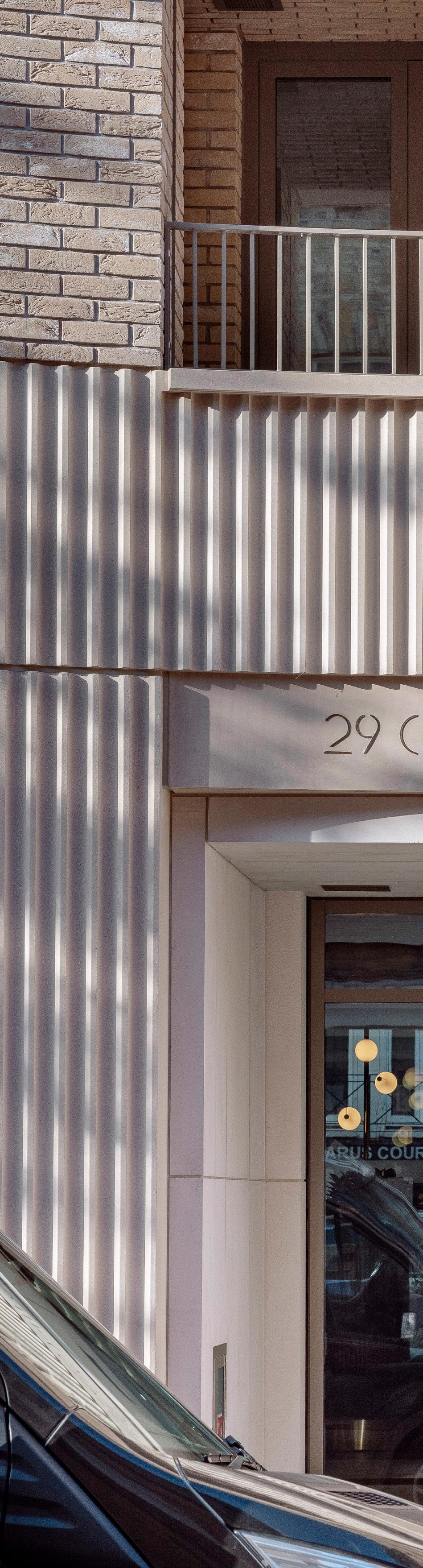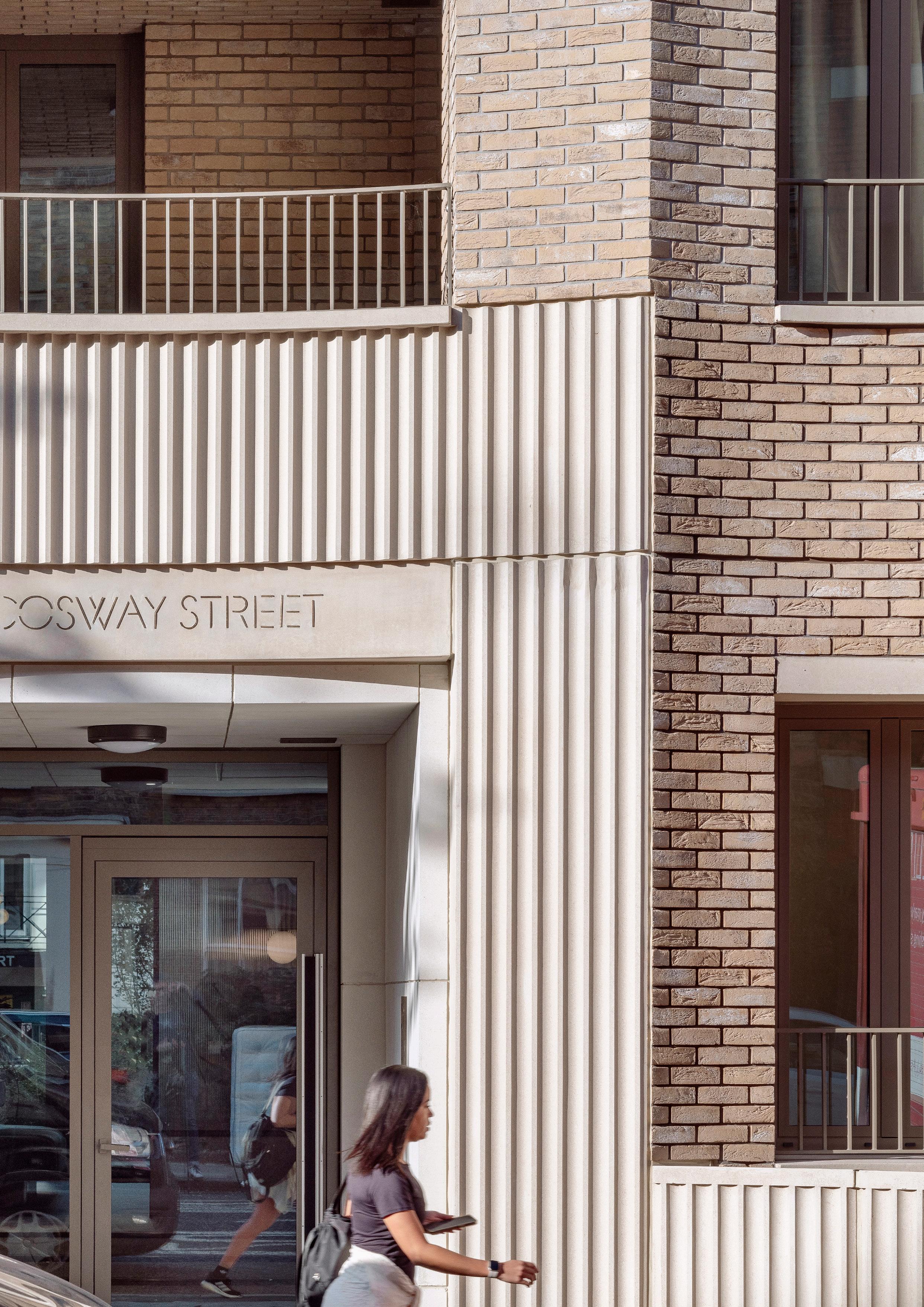 The brick facades are designed to be contemporary response to the rhythms, proportions, tones and colours of the surrounding Victorian and Georgian buildings. The fluted motif is inspired by the fluted columns of the adjacent Grade II* Listed Christ Church.