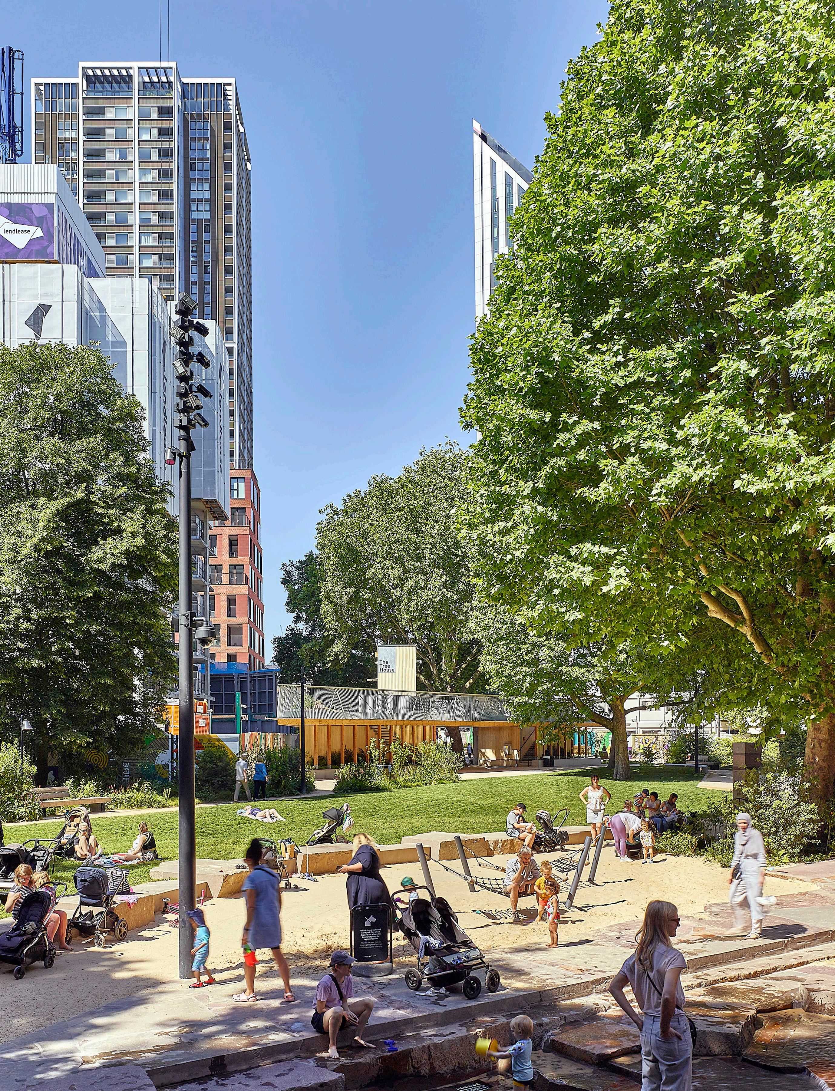 The pavilion is one of three public realm interventions we have added at King’s Cross together with Gasholder Park and Jellicoe Gardens.