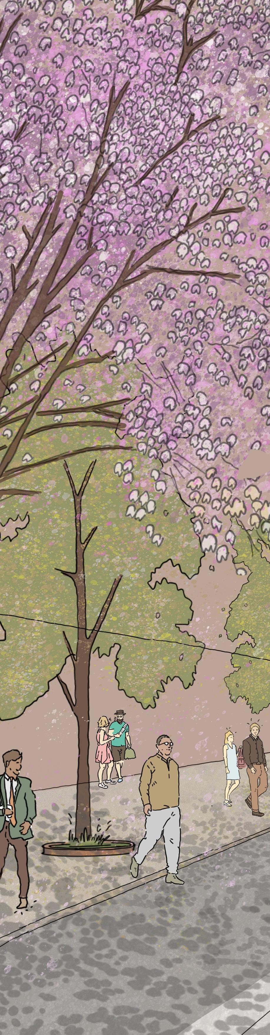 Beyond functionality, the pavilion serves as a landmark within the park. Its dynamic form tapers in height and width toward the entrance, naturally drawing visitors and creating a clear, welcoming point of arrival. The extended form elegantly frames the adjacent roadway, creating a sense of structure within the park while mirroring the rhythm of a treelined avenue opposite.