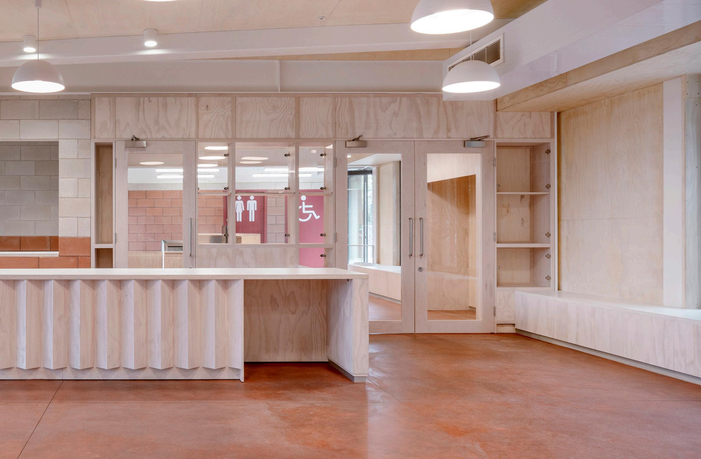 The single-story pavilion combines a simple form and robust materials to create a flexible, durable building designed for longevity. It features a thoughtfully integrated range of facilities, including a clubroom, changing rooms, public amenities, and offices for park staff. As an all-electric building, heating is supplied by an air source heat pump, while plywood linings and other low-carbon finishes contribute to its sustainable design. Materials were carefully specified for their low maintenance and recyclability, and a green roof enhances local biodiversity.