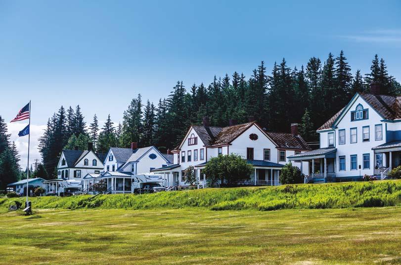 Early in november 1879, a canoe slipped into the mouth of the Chilkat i nlet carrying s . Hall Young, a Presbyterian missionary, and his naturalist friend, John Muir. Young told the Chilkat people of his intention to build a new Christian town between two waterways; the Chilkat r iver and the lynn Canal. two years later, the first permanent missionaries came to Haines and the resulting town was named after Mrs. F.e.H. Haines, who was secretary of the Presbyterian national Women’s Missionary Board. she never visited the town that bears her name, although she was a supporter of the mission to Haines. By 1881 the mission was fully established. i n the early 1900s, the government built a permanent Army post here known as Fort William H. seward, named after the man who negotiated the purchase of Alaska from russia. the Fort was to be a showcase reflecting the Army’s strength in Alaska. it covered over 4000 acres and the foundations of the buildings were cut from local granite by i talian stone masons. the officers houses had the latest in conveniences with indoor flush toilets and bathtubs.