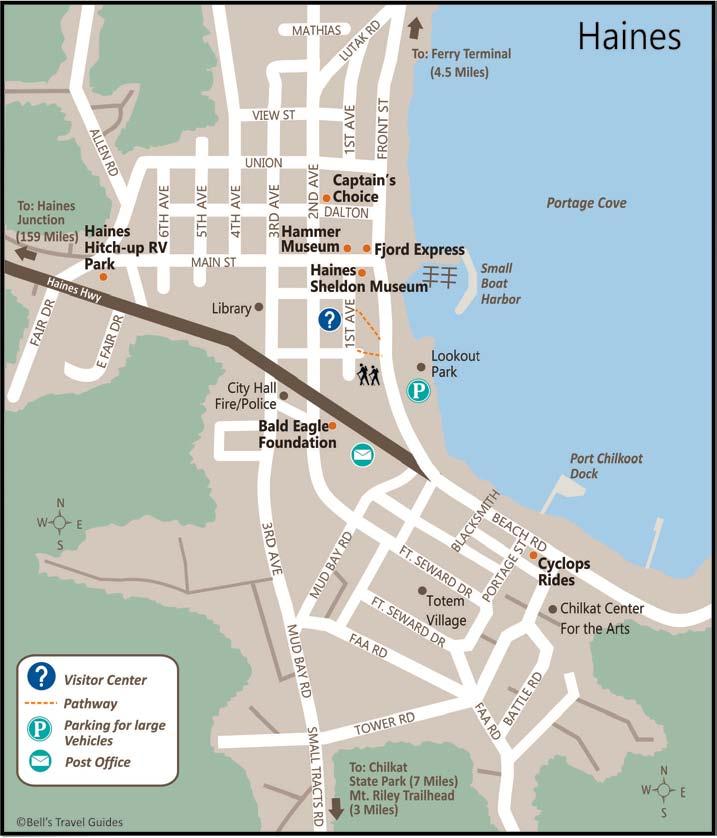 Haines Visitor Information Center is the perfect place to begin your adventure. stop by for maps, up-to-date information on local trails and wildlife, and personal recommendations from the friendly staff. 122 - 2nd Avenue. 907-766-6418