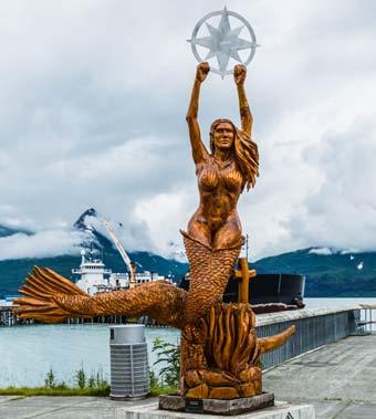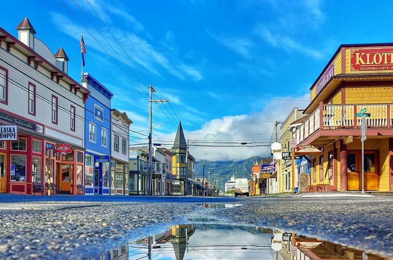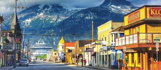 Southeast Alaska is made up of several large islands, thousands of smaller ones, and a thin strip of rugged mainland bordering Canada. this is also where you will find the world famous “inside Passage.” there are only three towns in southeast that are accessible by road; Haines, skagway and Hyder. this section of our guide details the amenities and attractions of both Haines and skagway, which are both easily accessible from the Alaska Highway. t he s outh k londike Highway to s kagway and the Haines Highway to Haines, along with the Alaska Marine Highway connecting s kagway and Haines make up the Golden Circle route. An incredibly beautiful journey that encompasses two countries with a shared Gold rush history. Visit Drivethegoldencircle.com to learn more.