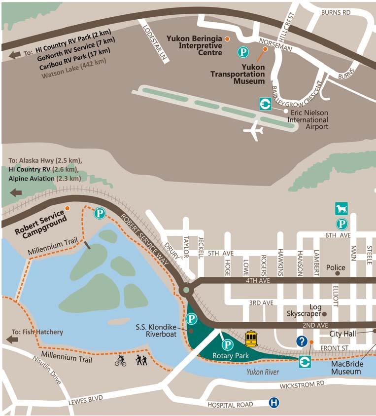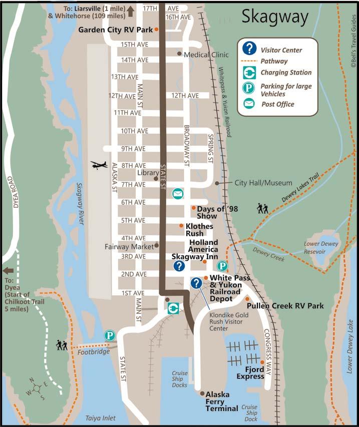 The Skagway Visitor Center is located in the Arctic Brotherhood Hall, the facade of which uses over 8000 pieces of driftwood collected from the skagway shores. Pick up a city walking tour map or local trail map for nearby hiking. t he s kagway Visitor website is an excellent resource for planning your stay in this historic little city. 205 Broadway. www.skagway.com 907-983-2854 or 888-762-1898